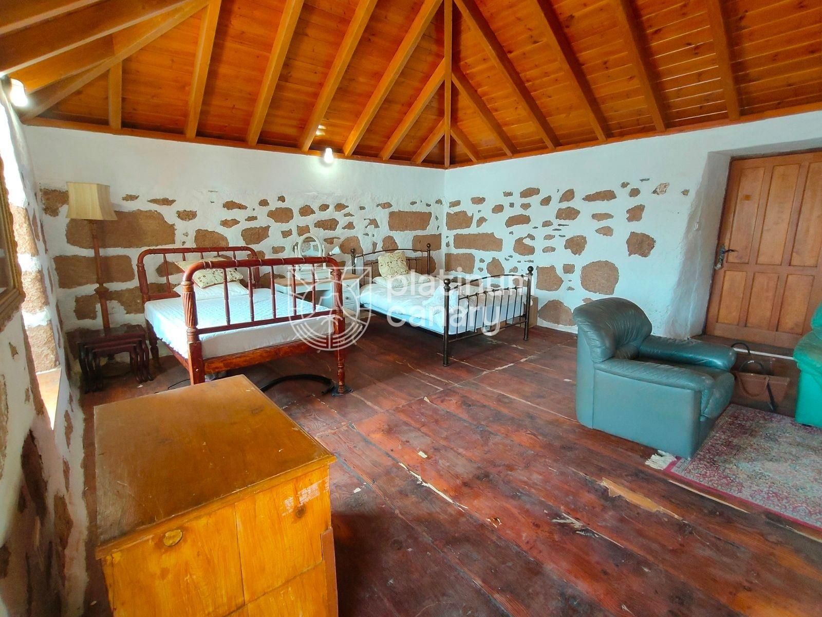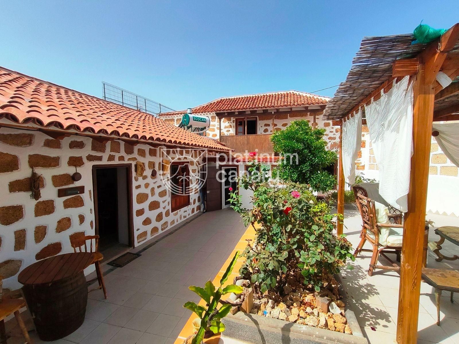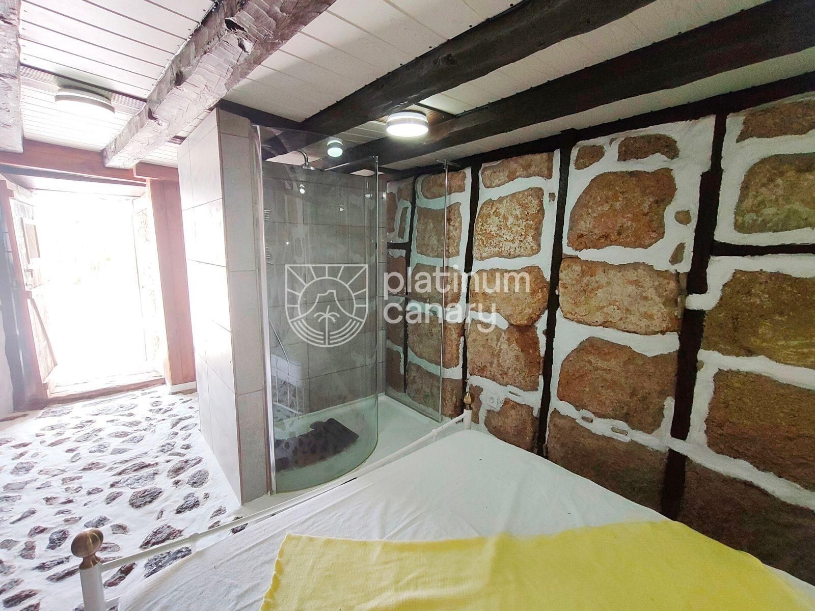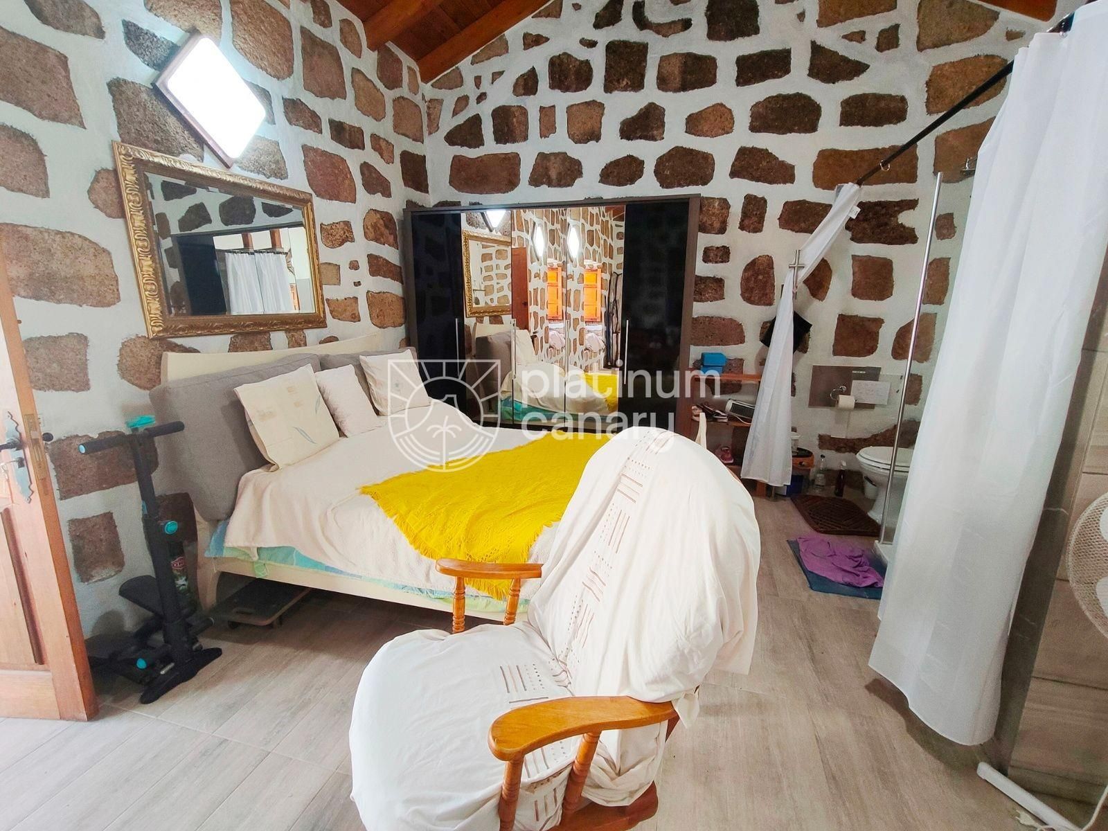 Exteriér nabízí skvělé zázemí pro celoroční život i setkávání: soukromé parkování, bazén, kanárský patio s BBQ a venkovní kuchyní, samostatný bar, velká dílna a zemědělská část s zahradou, ovocnými stromy a květinami, s otevřenými výhledy na krajinu i oceán. V hlavním domě je obývací pokoj s jídelnou, rustikální kuchyně s ostrůvkem, koupelna a dvojlůžkový pokoj v přízemí; venkovním vstupem je dostupná hostovská suita se sprchou. V patře je loftová suita s posezením a koupelnou s volně stojící vanou pod impozantní dřevěnou sedlovou střechou. Nechybí samostatná budova s vlastním vstupem (aktuálně ateliér), kterou lze přetvořit na další hostovskou suitu či nezávislou jednotku k pronájmu. Rekonstrukce je z velké části hotová, zbývají finální úpravy k dotažení vysněného kanárského domu.