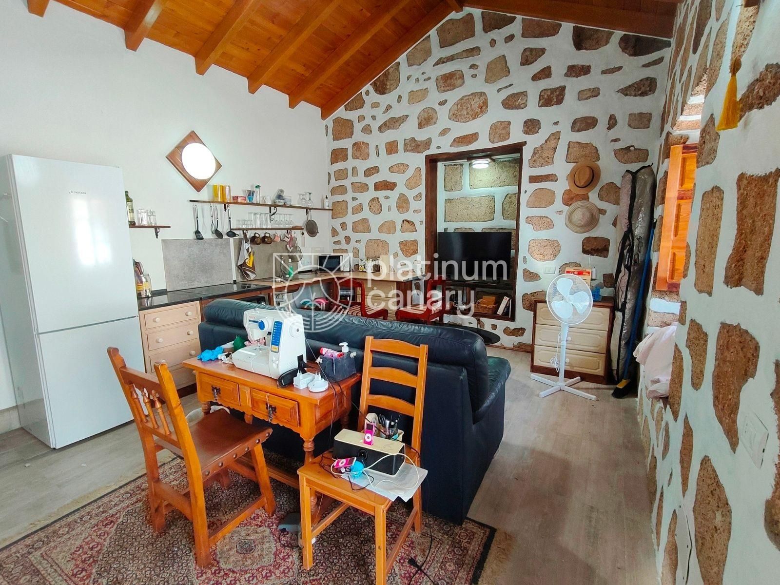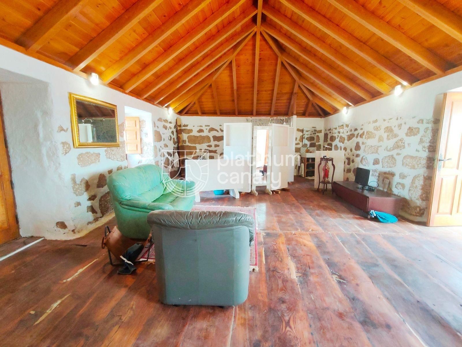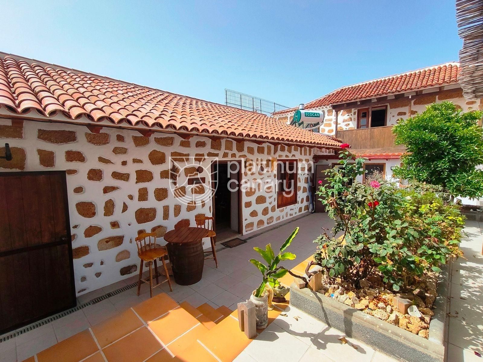 Exteriér nabízí skvělé zázemí pro celoroční život i setkávání: soukromé parkování, bazén, kanárský patio s BBQ a venkovní kuchyní, samostatný bar, velká dílna a zemědělská část s zahradou, ovocnými stromy a květinami, s otevřenými výhledy na krajinu i oceán. V hlavním domě je obývací pokoj s jídelnou, rustikální kuchyně s ostrůvkem, koupelna a dvojlůžkový pokoj v přízemí; venkovním vstupem je dostupná hostovská suita se sprchou. V patře je loftová suita s posezením a koupelnou s volně stojící vanou pod impozantní dřevěnou sedlovou střechou. Nechybí samostatná budova s vlastním vstupem (aktuálně ateliér), kterou lze přetvořit na další hostovskou suitu či nezávislou jednotku k pronájmu. Rekonstrukce je z velké části hotová, zbývají finální úpravy k dotažení vysněného kanárského domu.