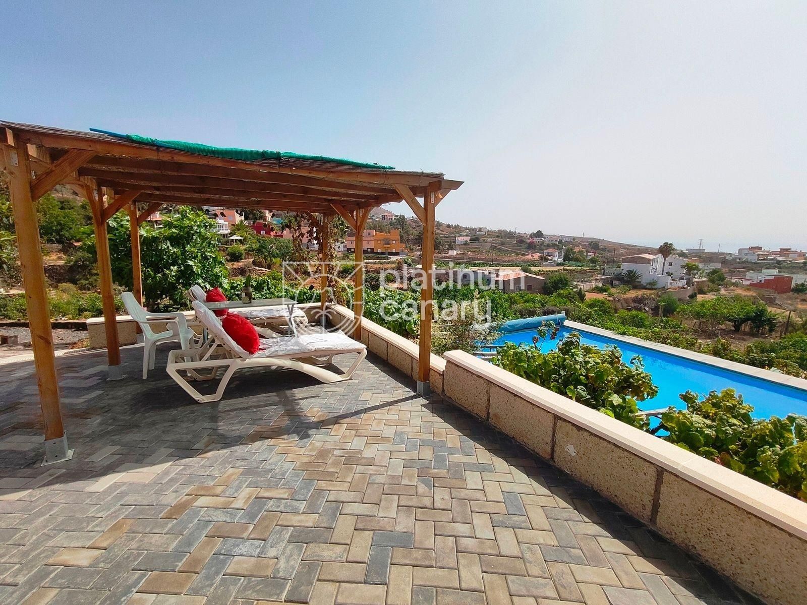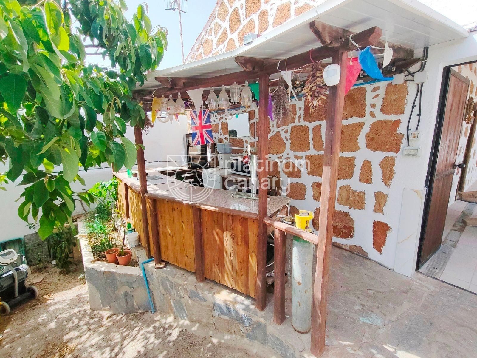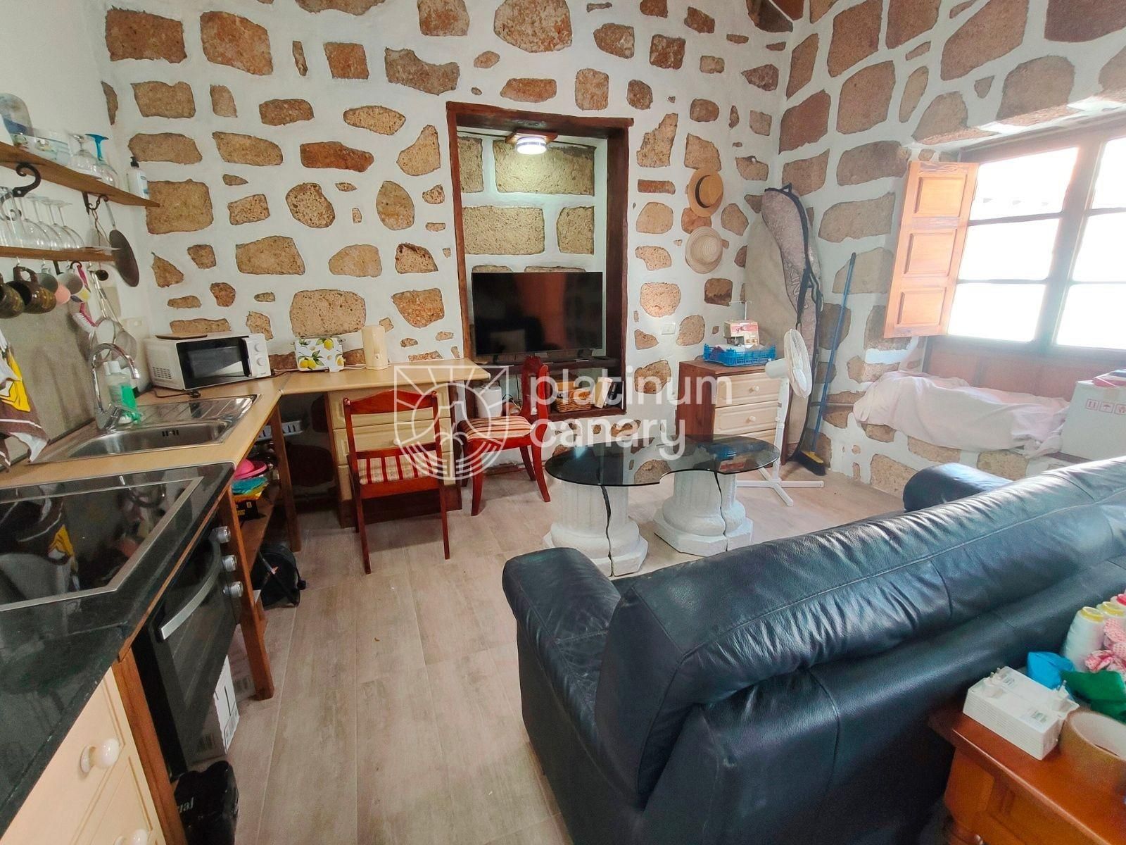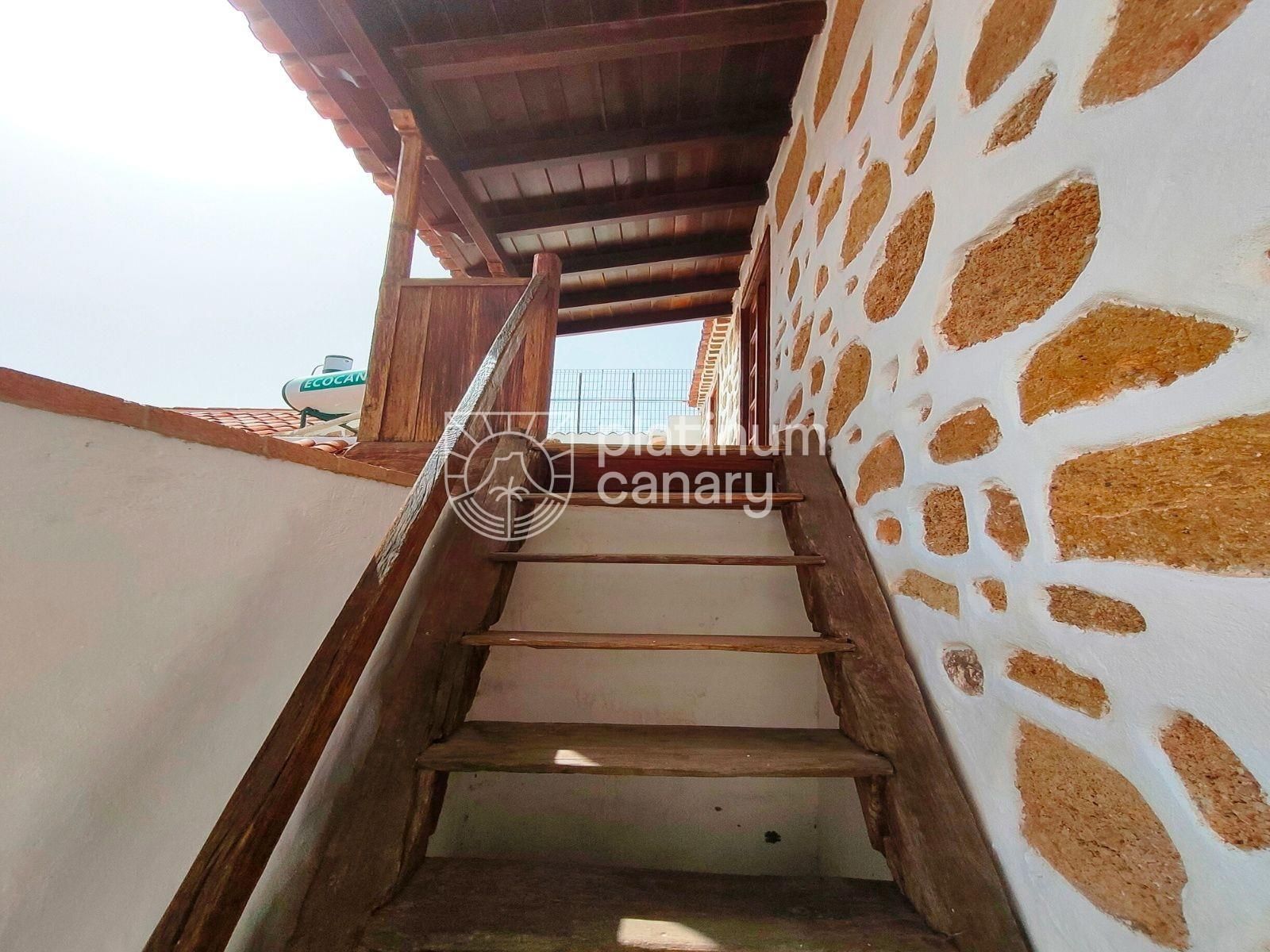 Exteriér nabízí skvělé zázemí pro celoroční život i setkávání: soukromé parkování, bazén, kanárský patio s BBQ a venkovní kuchyní, samostatný bar, velká dílna a zemědělská část s zahradou, ovocnými stromy a květinami, s otevřenými výhledy na krajinu i oceán. V hlavním domě je obývací pokoj s jídelnou, rustikální kuchyně s ostrůvkem, koupelna a dvojlůžkový pokoj v přízemí; venkovním vstupem je dostupná hostovská suita se sprchou. V patře je loftová suita s posezením a koupelnou s volně stojící vanou pod impozantní dřevěnou sedlovou střechou. Nechybí samostatná budova s vlastním vstupem (aktuálně ateliér), kterou lze přetvořit na další hostovskou suitu či nezávislou jednotku k pronájmu. Rekonstrukce je z velké části hotová, zbývají finální úpravy k dotažení vysněného kanárského domu.