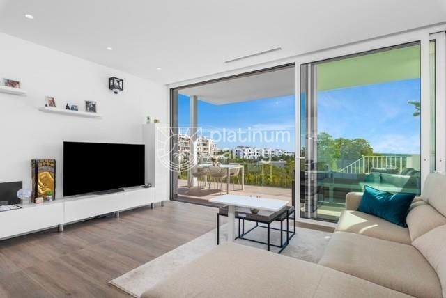 Apartamento disponible 2 + kk Con dos baños, combina comodidad moderna con un estilo de vida superior. Se accede a un amplio y diáfano espacio, donde la luminosa cocina se integra a la perfección con la sala de estar, creando un espacio agradable para relajarse y pasar el rato con amigos. Los amplios ventanales aportan abundante luz natural y realzan la amplitud del interior. El apartamento incluye amplia terraza Ideal para cenar al aire libre y disfrutar de las vistas a la vegetación, el encanto se ve realzado por el cuidado mantenimiento jardin Con mucha privacidad. El apartamento está completamente... amueblado Incluyendo electrodomésticos de calidad, la comodidad está asegurada. aire acondicionado a persianas eléctricas. También disponible plaza de aparcamiento privada a sklep.