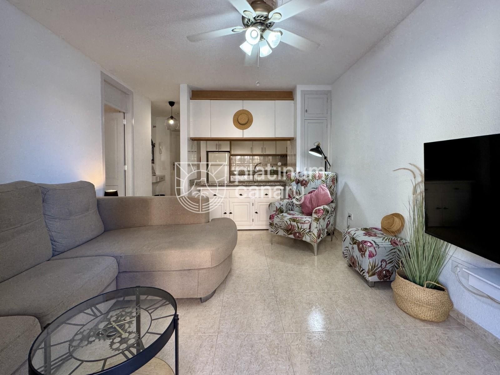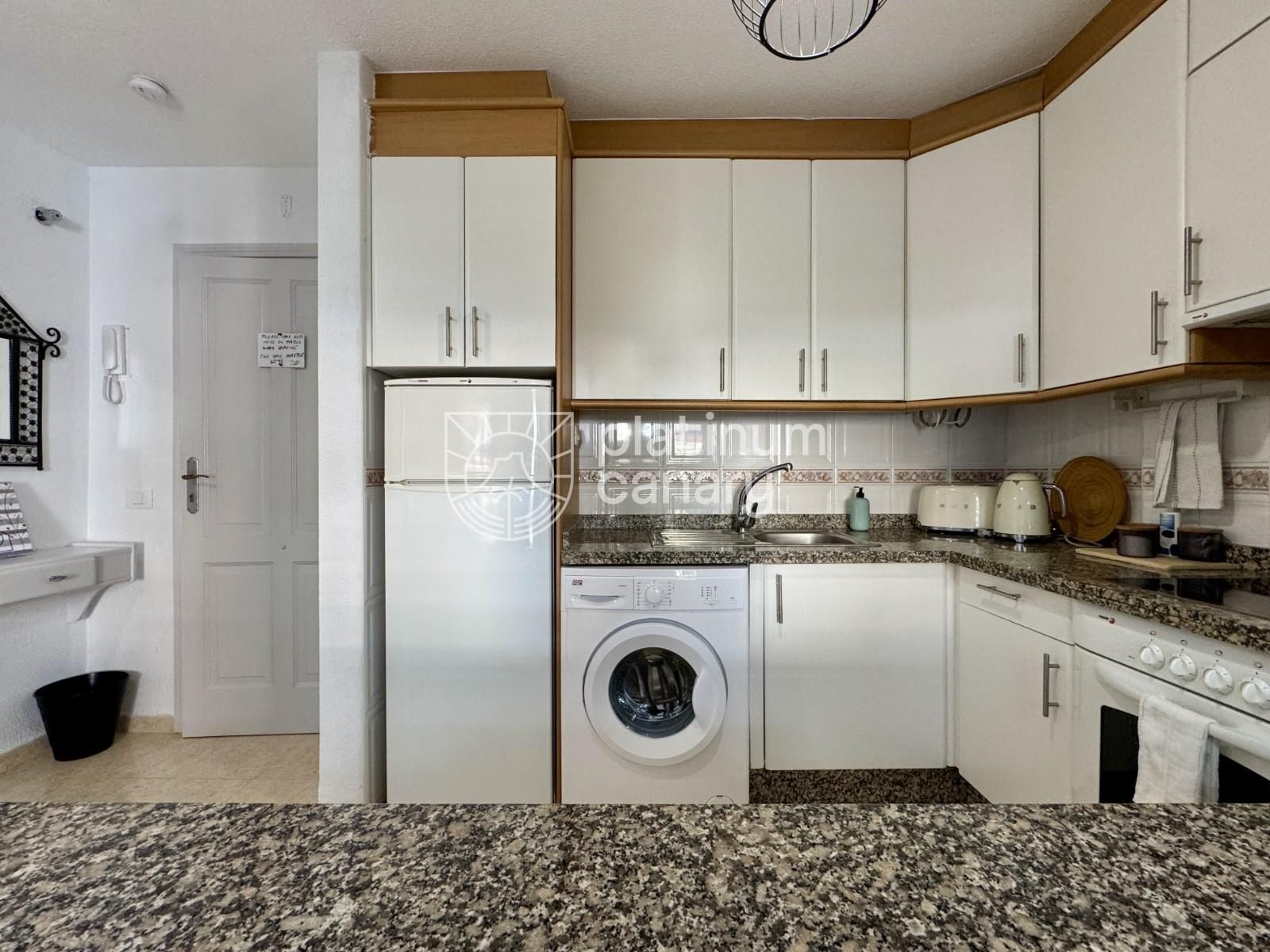 El apartamento está situado en el tranquilo y popular complejo Sunset View, a solo unos minutos a pie de la playa de Ajabo en Callao Salvaje, que ofrece un ambiente agradable y relajado con restaurantes, cafeterías y otros servicios en las inmediaciones, lo que lo convierte en un lugar ideal para quienes buscan tranquilidad pero desean tener todo lo necesario al alcance. El centro comercial Rosa Center, con supermercado y otras tiendas, también está cerca, mientras que la ciudad... Adeje Está a solo unos minutos en coche y ofrece más entretenimiento y servicios. Este apartamento de 1 dormitorio y 1 baño está completamente amueblado y listo para entrar a vivir. Encontrará una cocina americana totalmente equipada conectada al salón, creando un espacio funcional y moderno. El baño es amplio y está equipado con bañera y ducha, y el dormitorio cuenta con armarios empotrados y un ambiente agradable. El salón, amueblado con un sofá esquinero y una mesa de comedor, da a un balcón privado con vistas al patio interior y a la piscina comunitaria. El apartamento también incluye una plaza de aparcamiento para mayor comodidad.