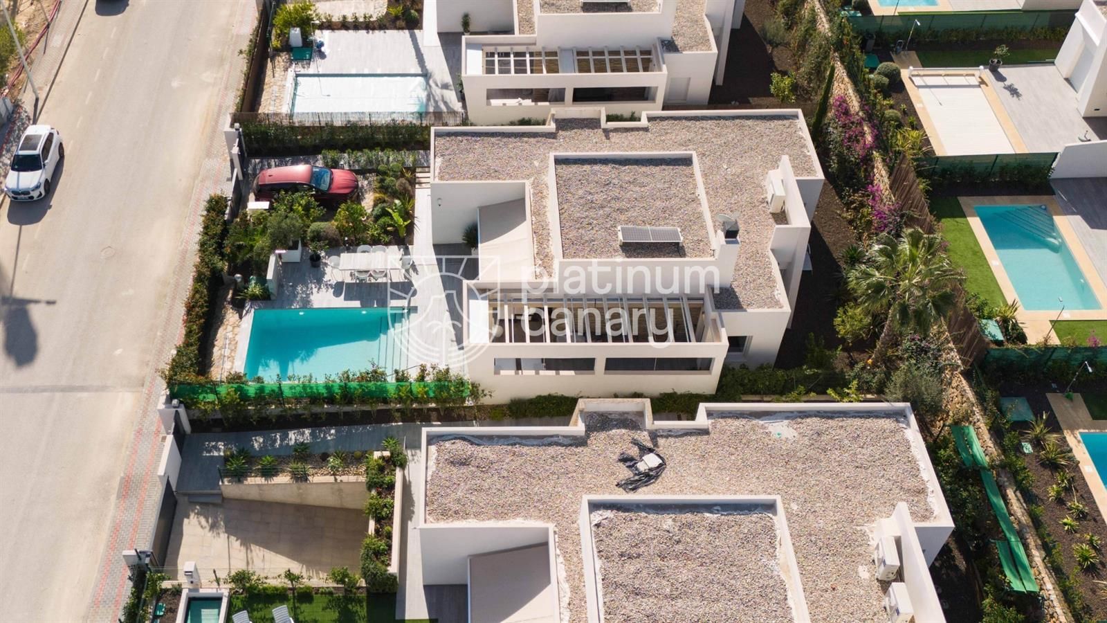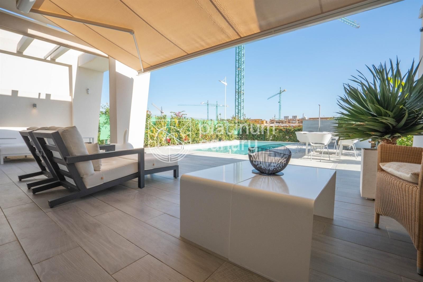 Construido sobre terreno 500 m²Esta villa tiene espacio habitable abierto Combinando sala, cocina y comedor, un espacio muy luminoso con grandes ventanales que dan a una impresionante Terraza en forma de L, al jardín y piscina privadaLa terraza está parcialmente cubierta. pérgola con toldos eléctricos, convirtiéndolo en un lugar ideal para disfrutar del buen clima mediterráneo durante todo el año.
