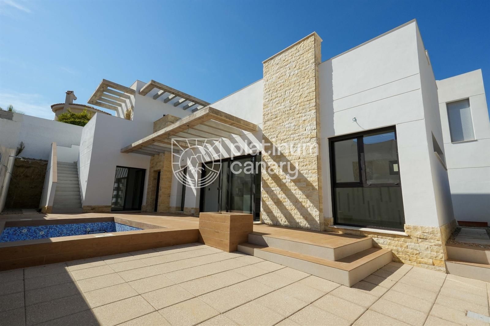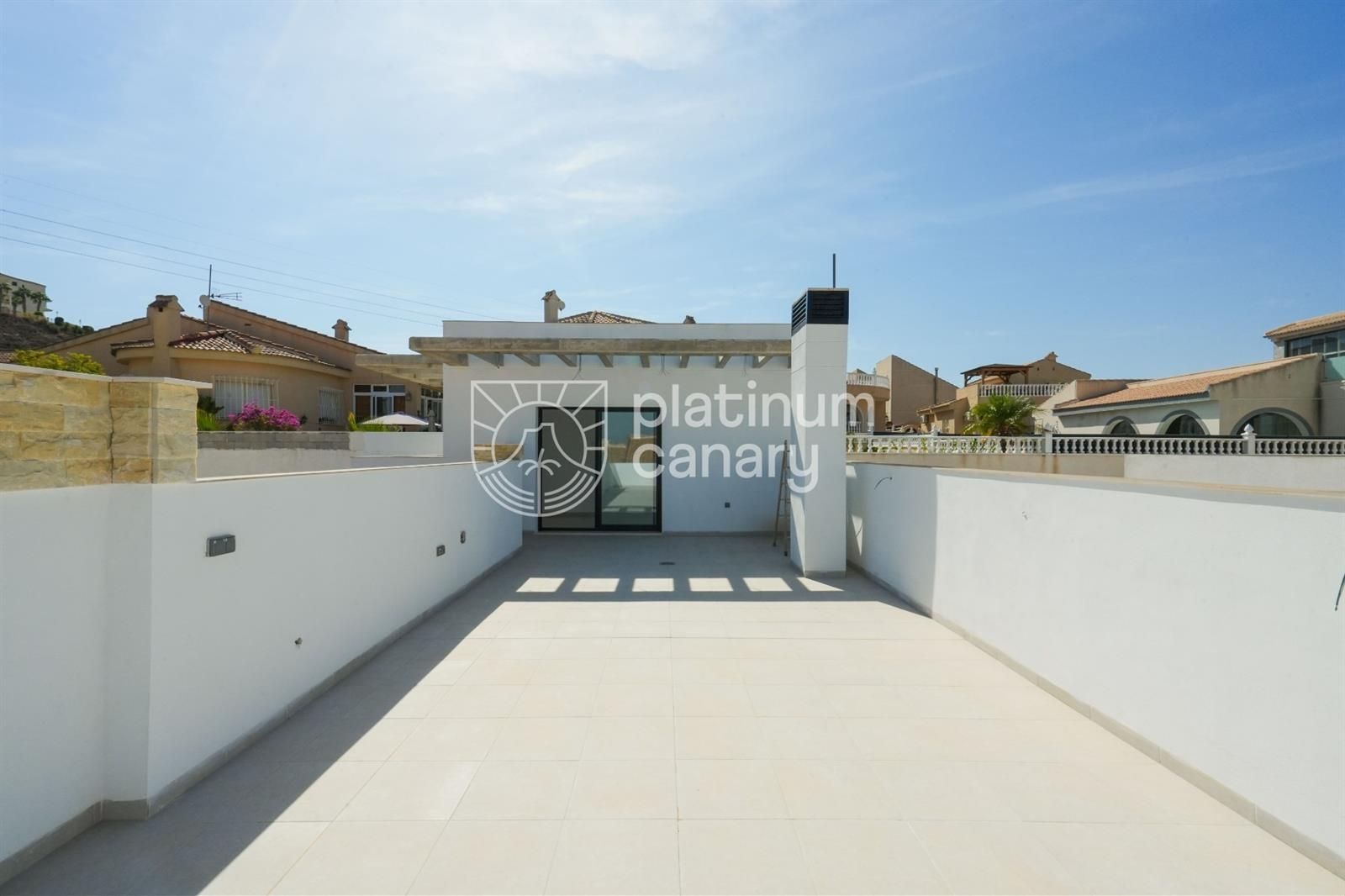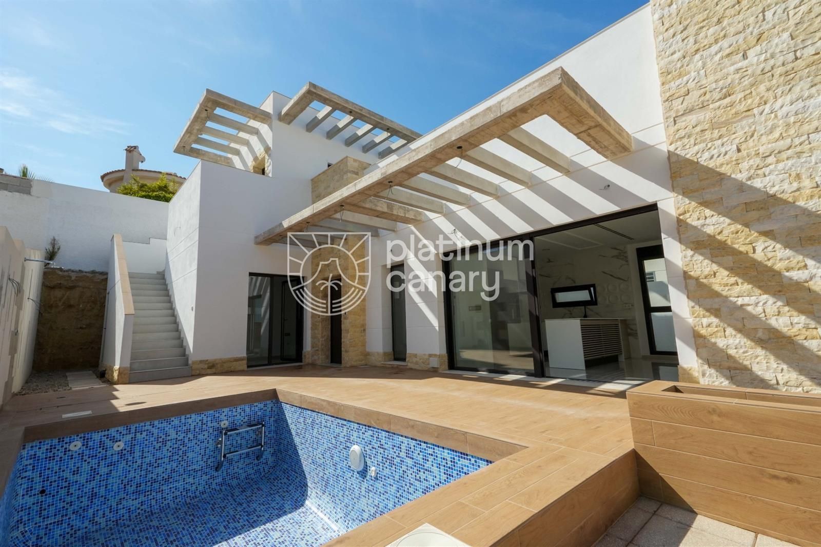 Esta villa a estrenar, ubicada en una generosa parcela de 223 m², ofrece 98 m² de espacio habitable de diseño elegante. La planta baja consta de dos amplios dormitorios, incluyendo un lujoso dormitorio principal con baño en suite, y otro baño completo. El salón de planta abierta se integra a la perfección con el comedor y la moderna cocina; todo ello, bañado por la luz natural que entra por los amplios ventanales, creando un ambiente amplio y acogedor.