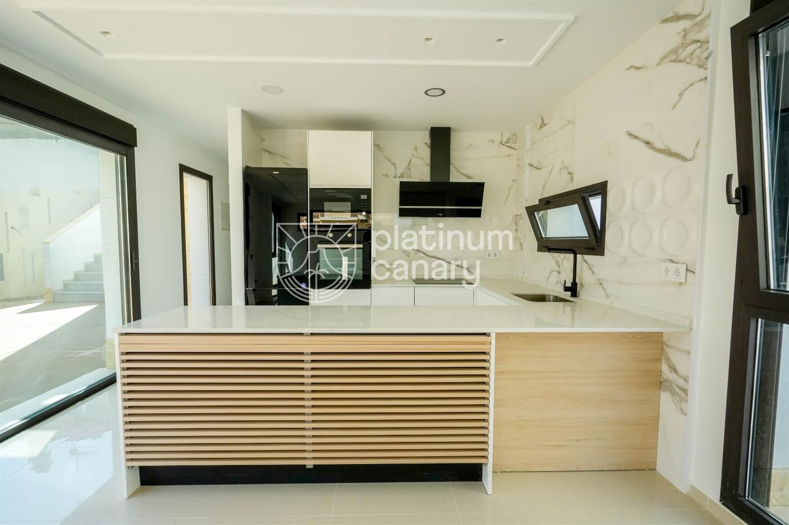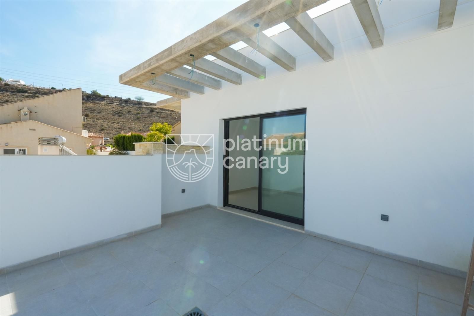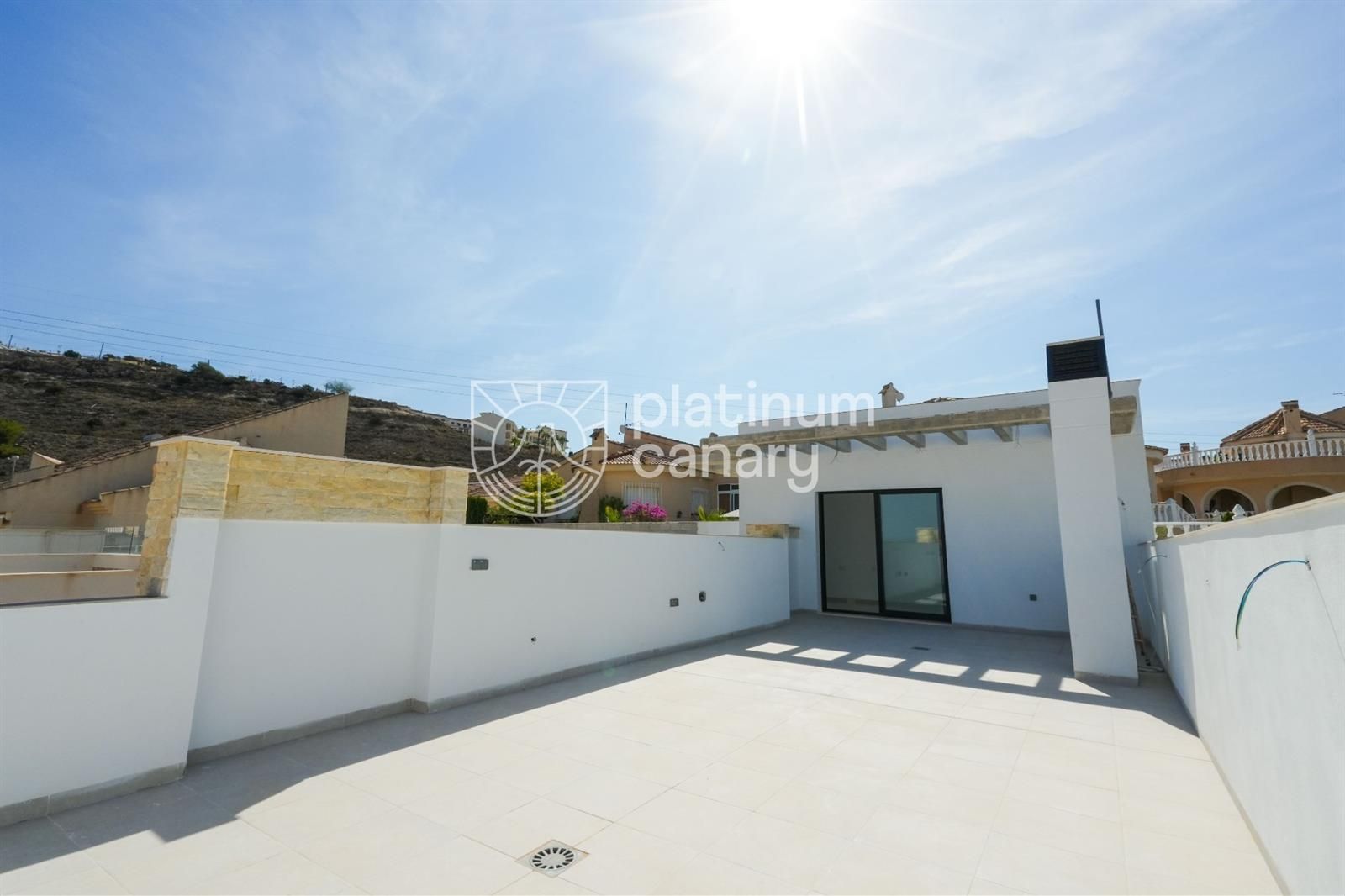 Esta villa a estrenar, ubicada en una generosa parcela de 223 m², ofrece 98 m² de espacio habitable de diseño elegante. La planta baja consta de dos amplios dormitorios, incluyendo un lujoso dormitorio principal con baño en suite, y otro baño completo. El salón de planta abierta se integra a la perfección con el comedor y la moderna cocina; todo ello, bañado por la luz natural que entra por los amplios ventanales, creando un ambiente amplio y acogedor.