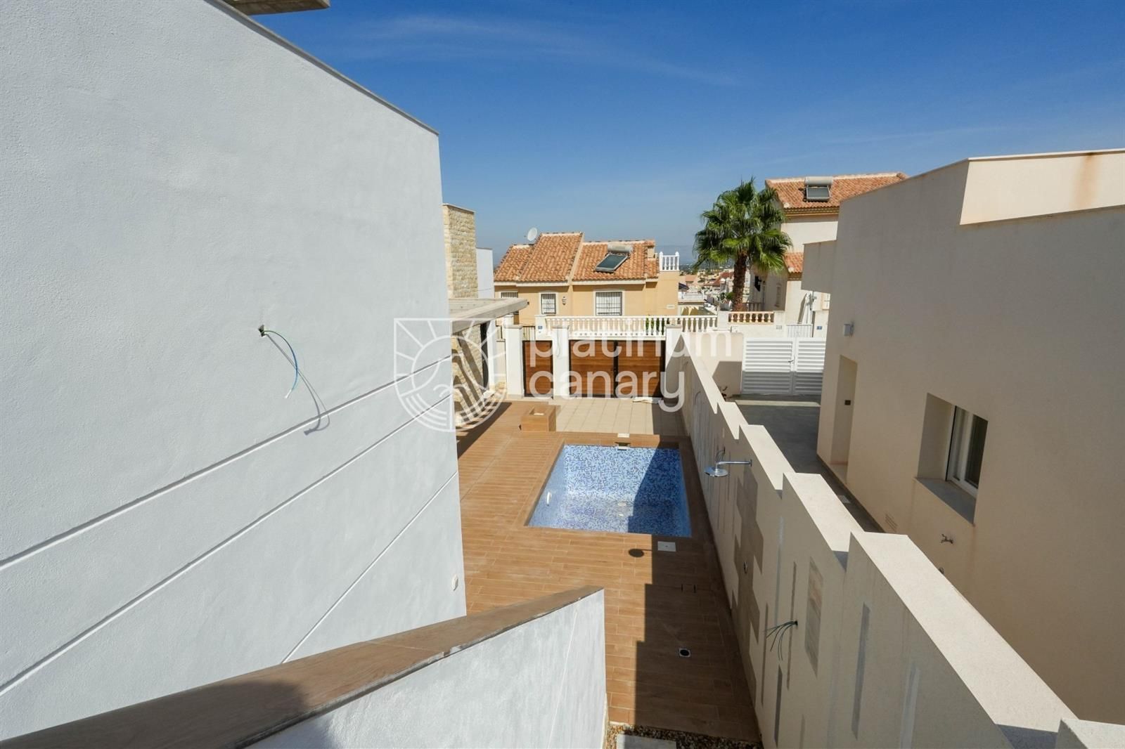Al salir, encontrará una escalera exterior que conduce a una planta superior privada con un tercer dormitorio, amplio y con baño propio, y acceso a una amplia terraza. Ideal para tomar el sol o recibir invitados, la terraza ofrece amplio espacio para relajarse y disfrutar del clima mediterráneo.