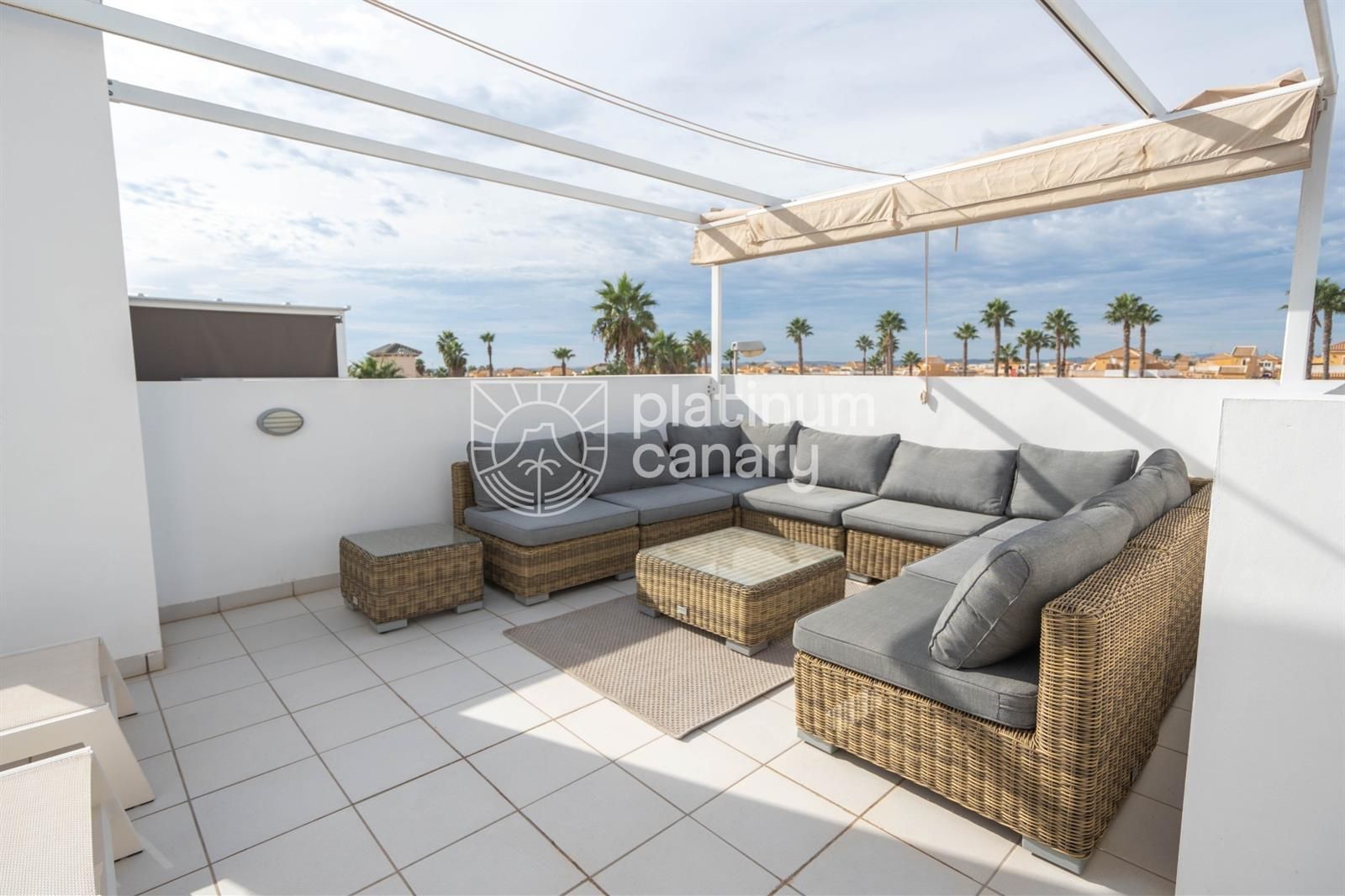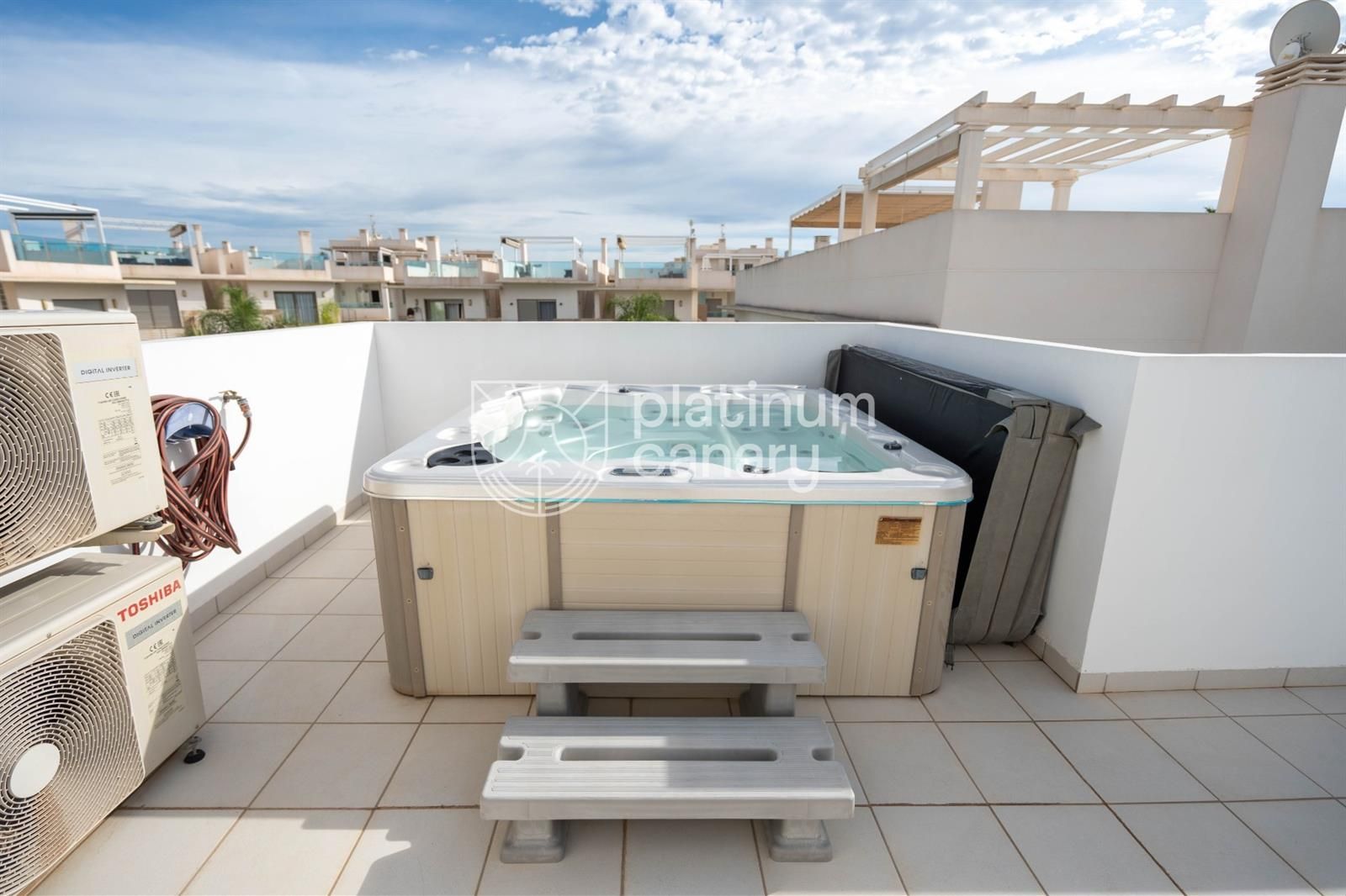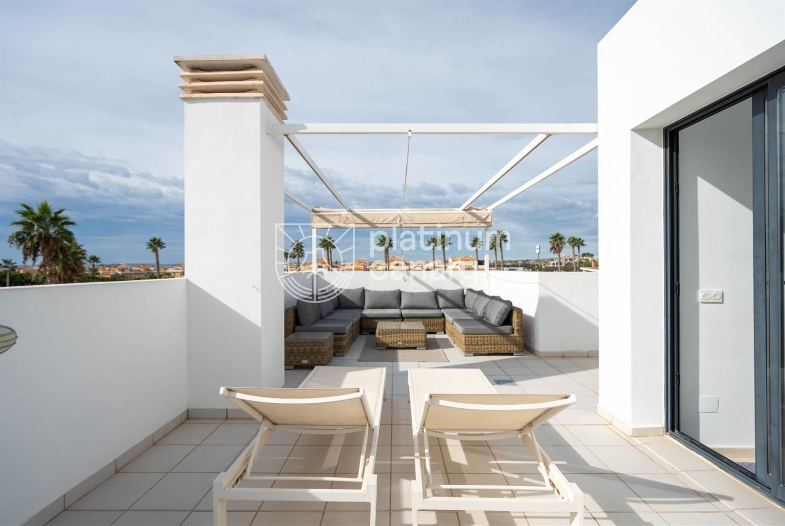 Esta magnífica propiedad cuenta con un salón-comedor de doble altura, una cocina abierta, 3 dormitorios y 3 baños. La casa también cuenta con piscina privada y una terraza en la azotea con jacuzzi. Todo ello situado en una tranquila zona residencial cerrada.
