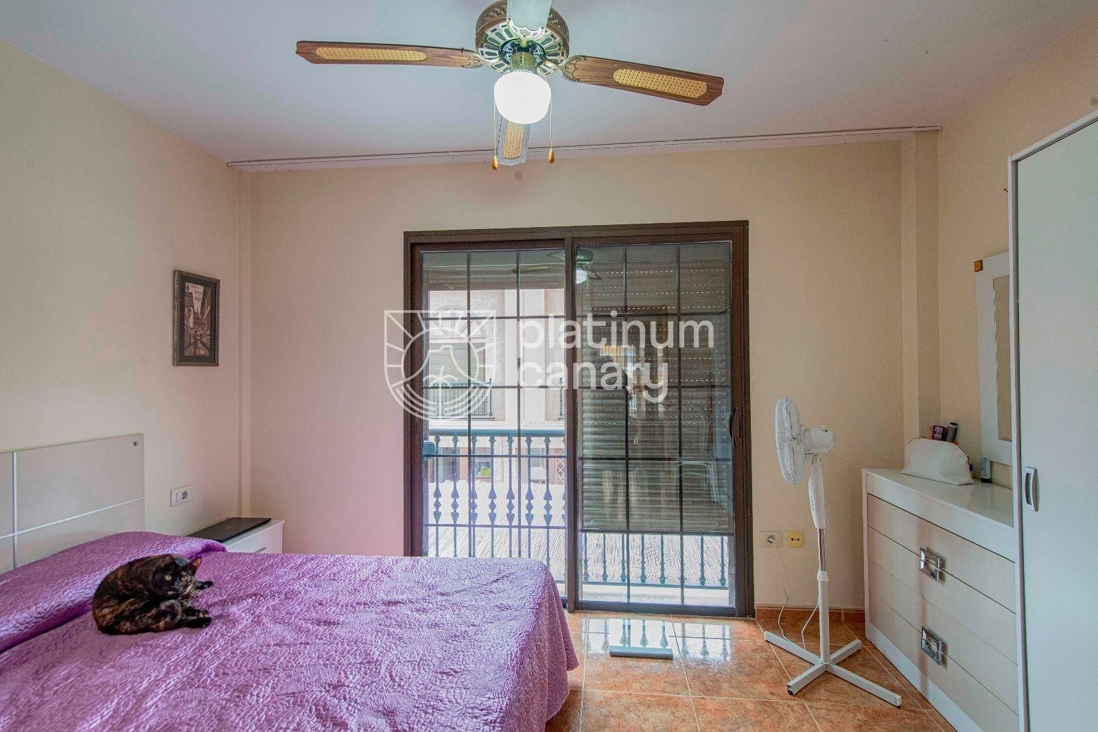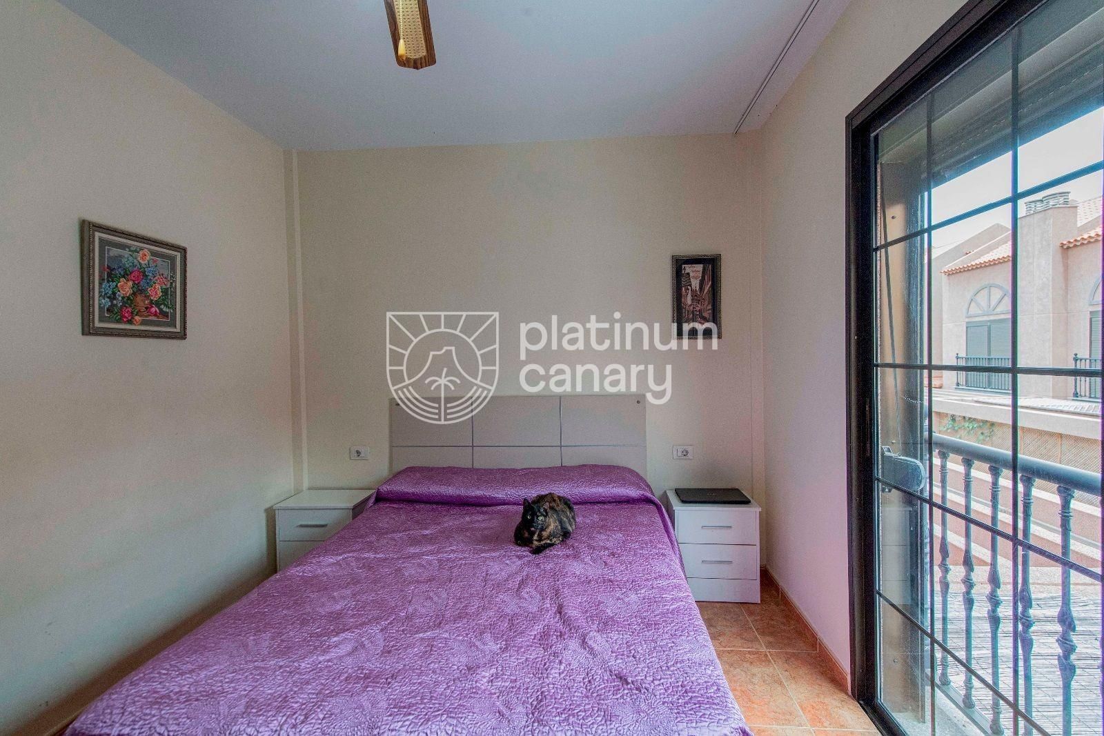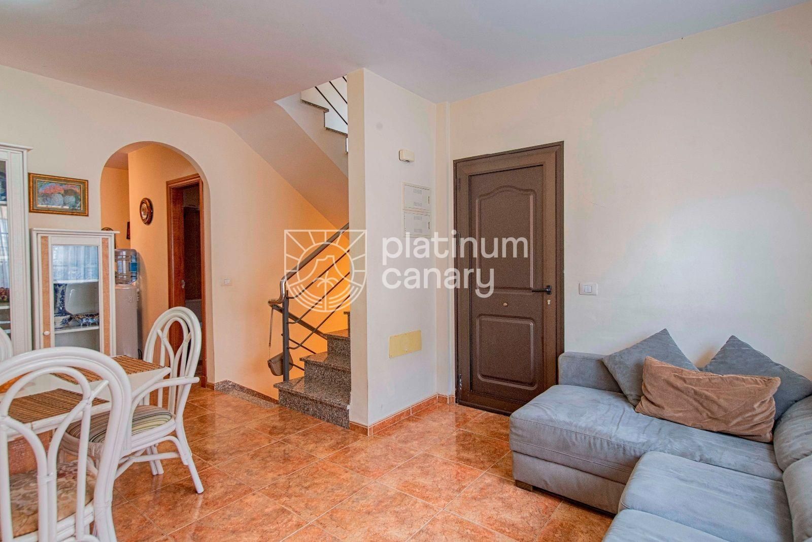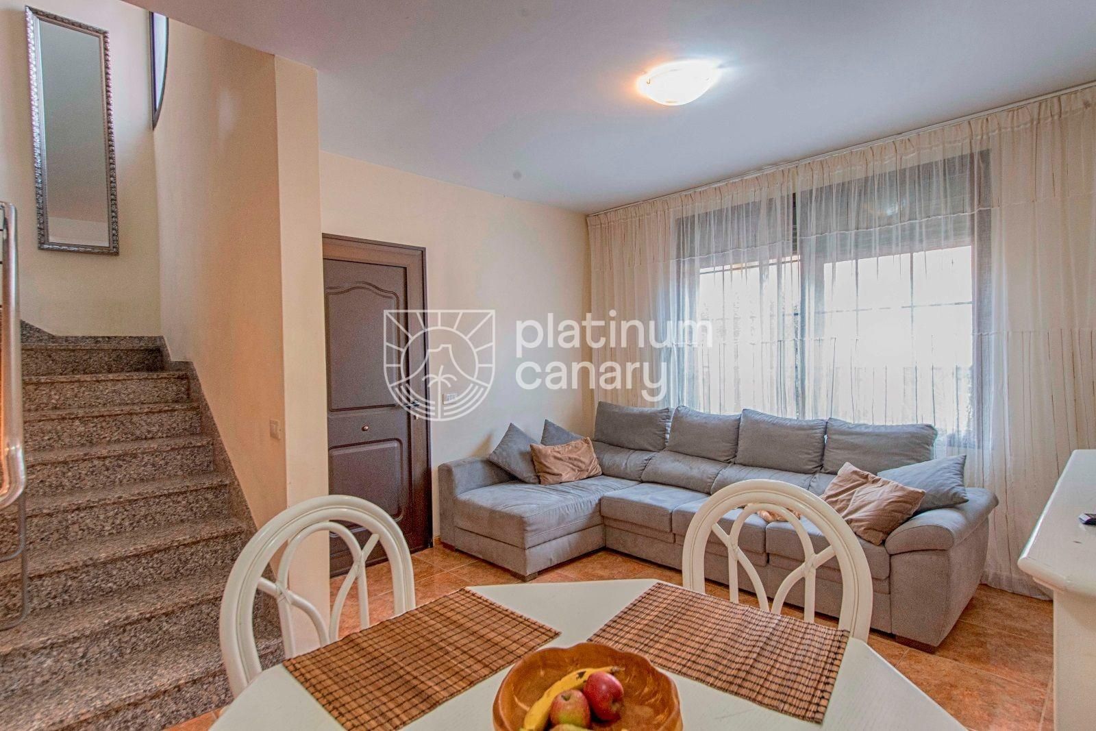 Casa de dos pisos A solo ~5 minutos a pie de la playa y del centro. El Médano. Disposición con garaje para 2 coches (aprox. 30 m²), dos dormitorios principales + Habitación abuhardillada (~39 m²). Aporte cocina semiabierta Sigue en terraza ~27 m² (Ideal para comer al aire libre). En la planta baja hay otra sala multifuncional (dormitorio/taller/gimnasio/cine). 1× baño + 1× aseoTerrazas soleadas por la mañana y por la tarde. Comunidad: 30 €/mes. Año de construcción: 2005.