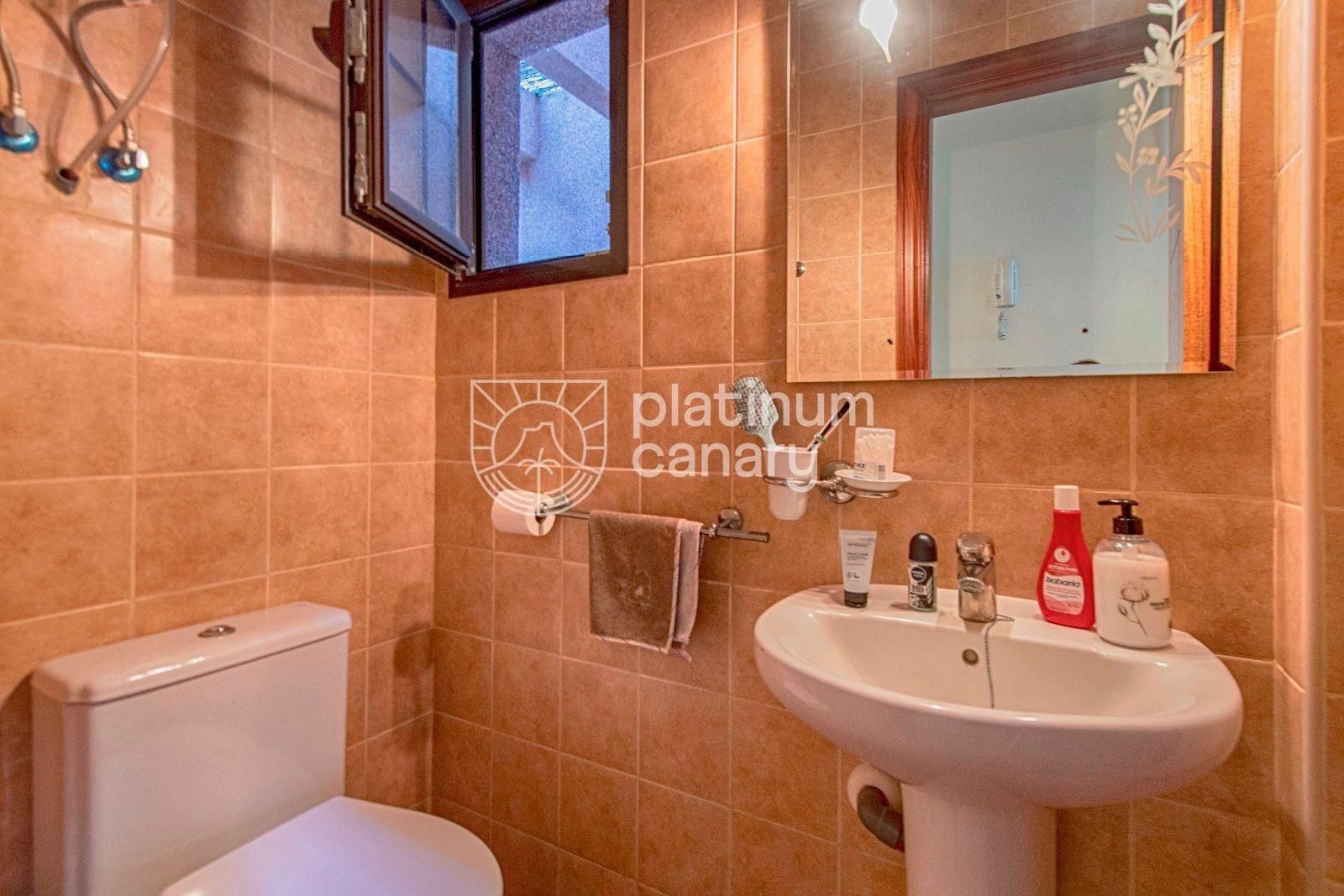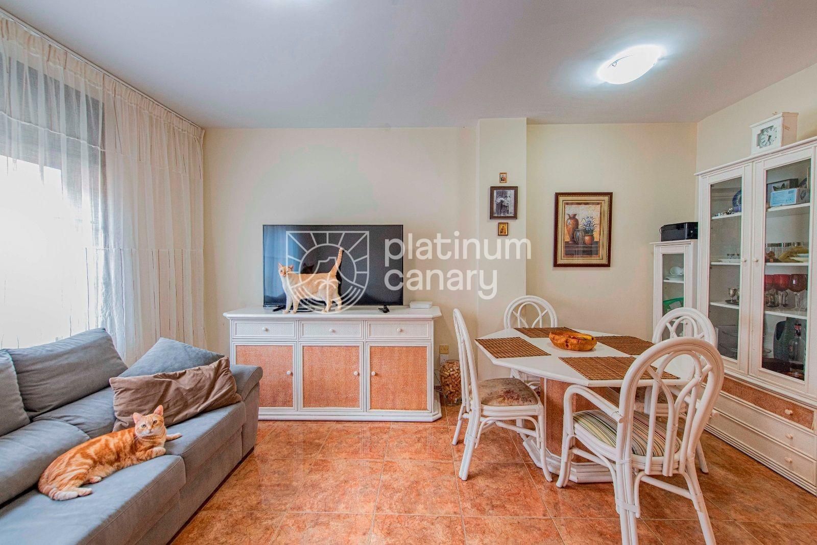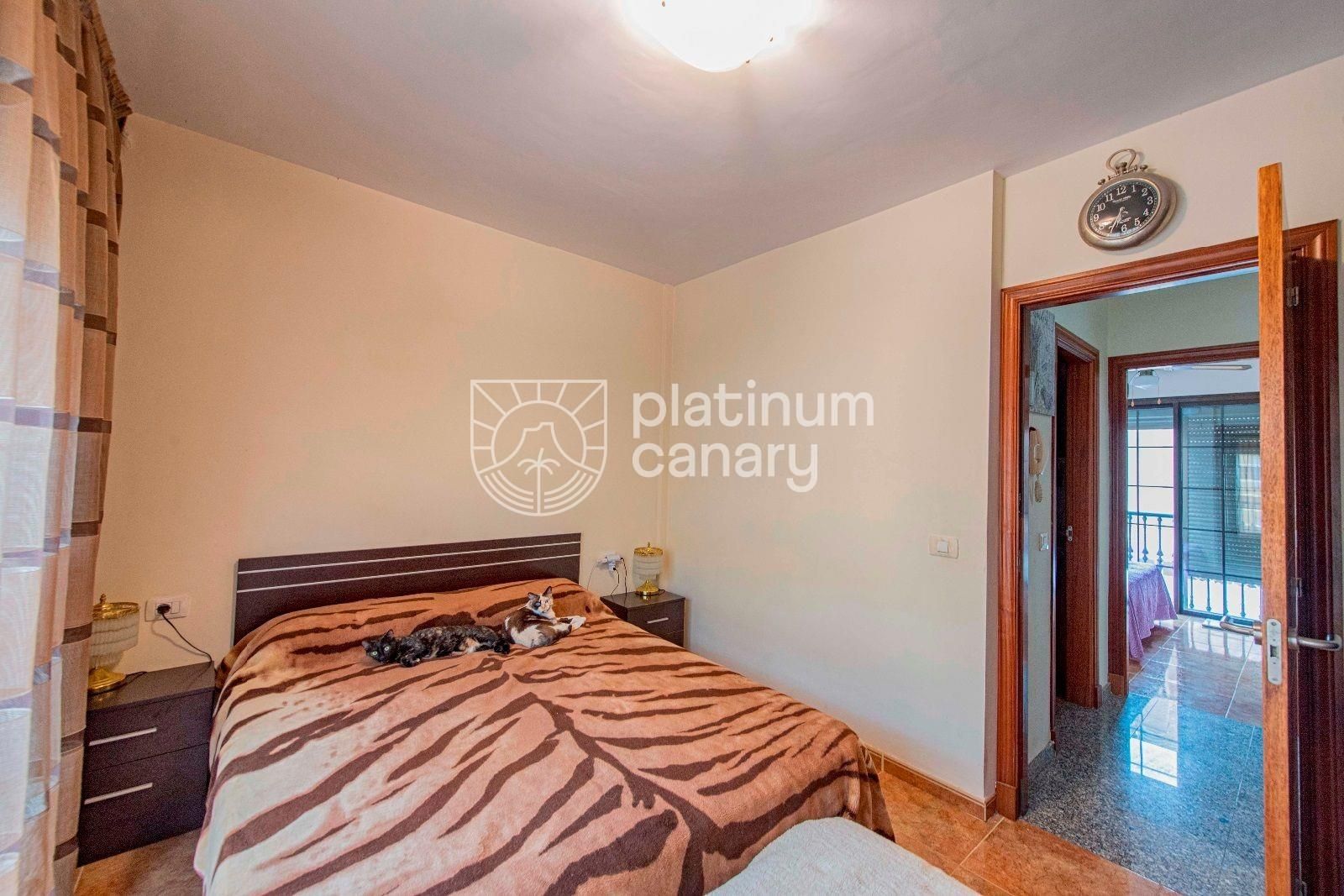 Casa de dos pisos A solo ~5 minutos a pie de la playa y del centro. El Médano. Disposición con garaje para 2 coches (aprox. 30 m²), dos dormitorios principales + Habitación abuhardillada (~39 m²). Aporte cocina semiabierta Sigue en terraza ~27 m² (Ideal para comer al aire libre). En la planta baja hay otra sala multifuncional (dormitorio/taller/gimnasio/cine). 1× baño + 1× aseoTerrazas soleadas por la mañana y por la tarde. Comunidad: 30 €/mes. Año de construcción: 2005.