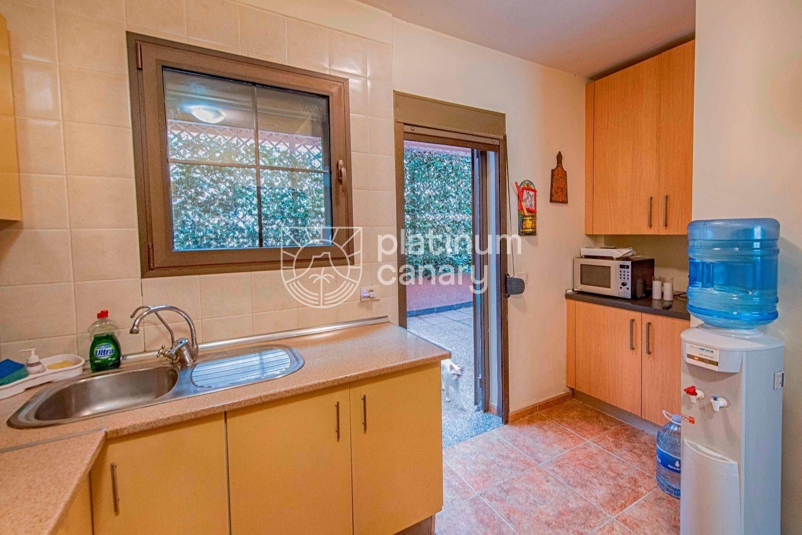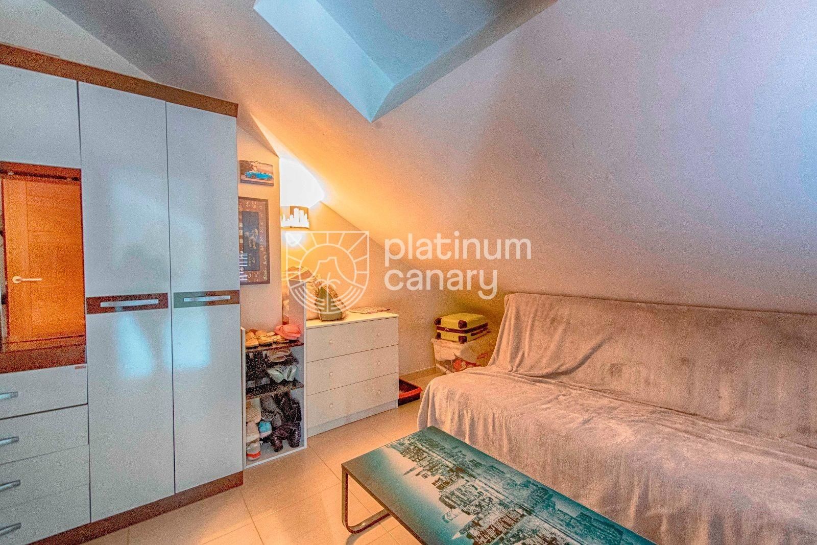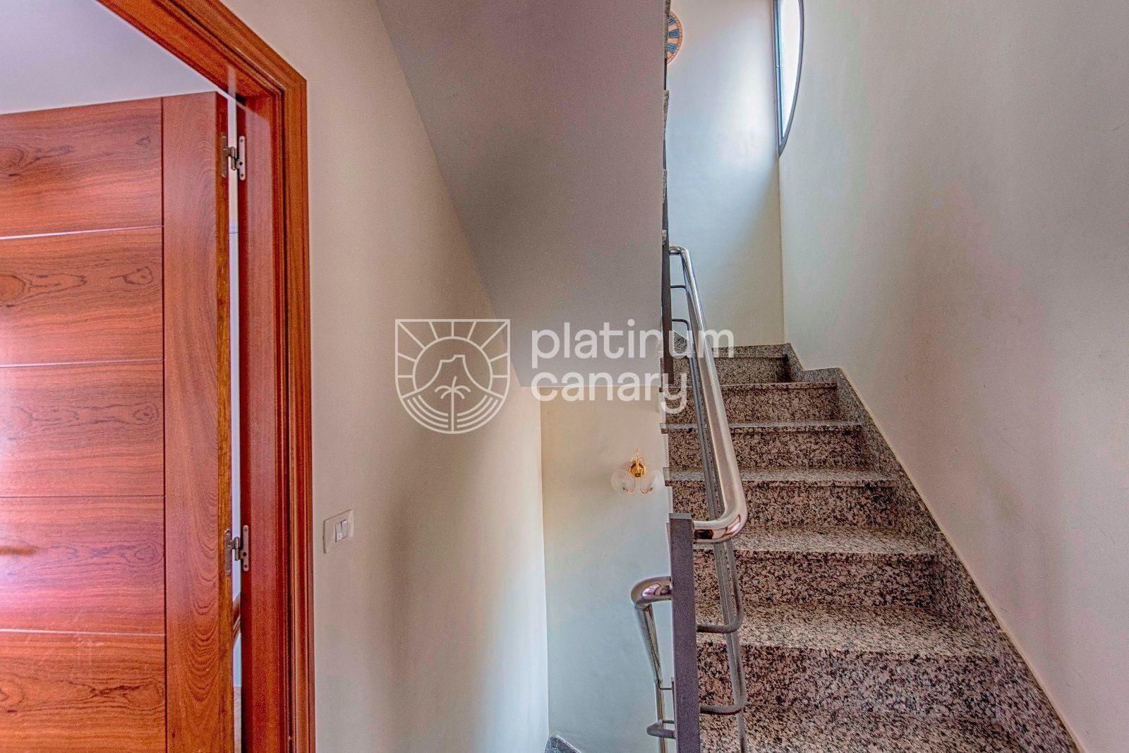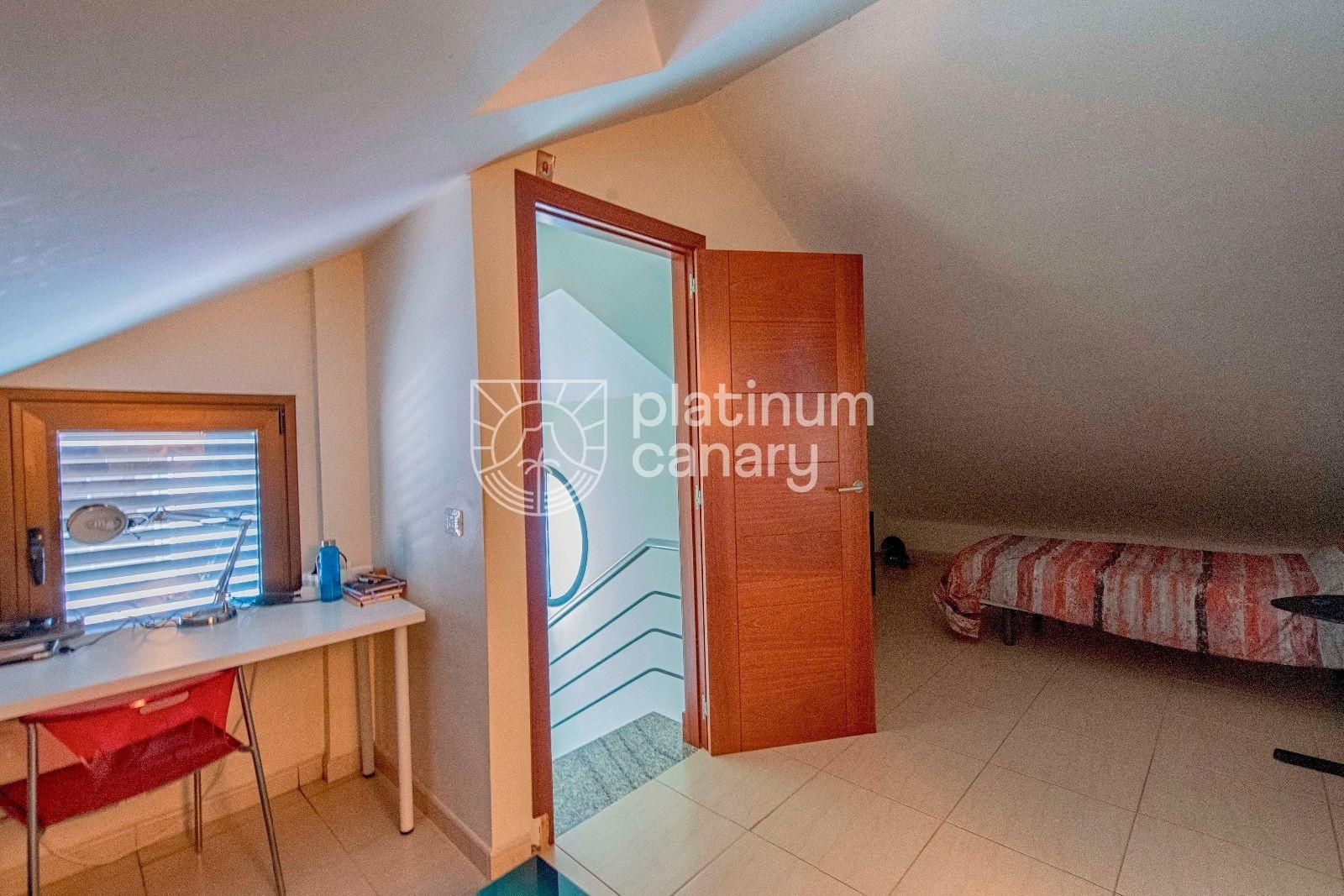 Casa de dos pisos A solo ~5 minutos a pie de la playa y del centro. El Médano. Disposición con garaje para 2 coches (aprox. 30 m²), dos dormitorios principales + Habitación abuhardillada (~39 m²). Aporte cocina semiabierta Sigue en terraza ~27 m² (Ideal para comer al aire libre). En la planta baja hay otra sala multifuncional (dormitorio/taller/gimnasio/cine). 1× baño + 1× aseoTerrazas soleadas por la mañana y por la tarde. Comunidad: 30 €/mes. Año de construcción: 2005.
