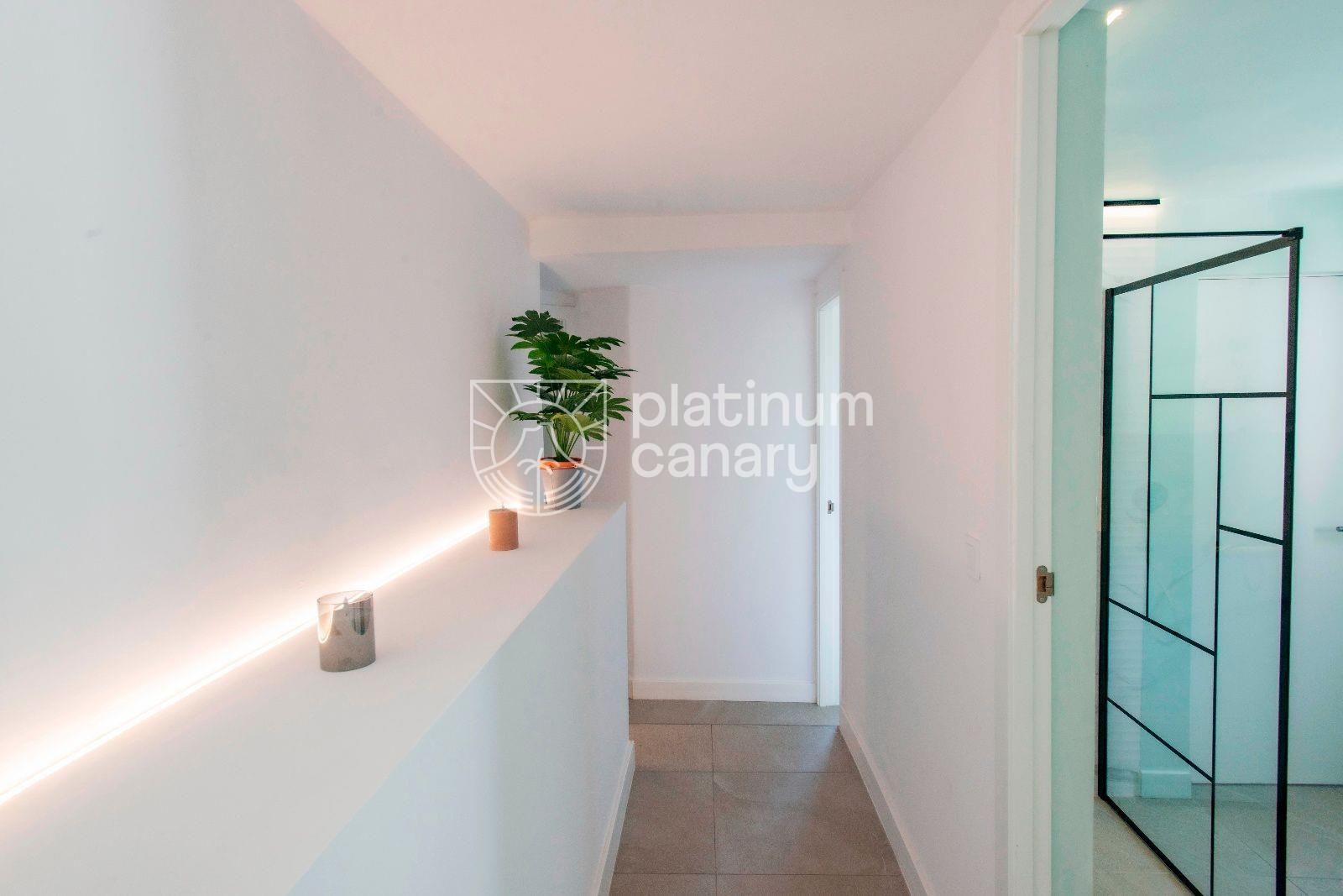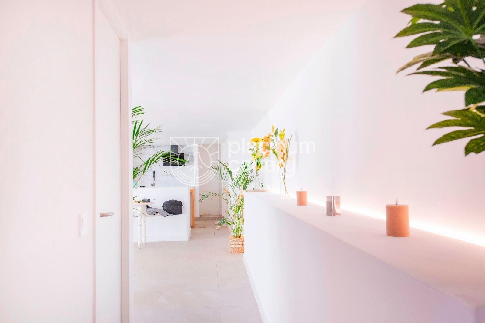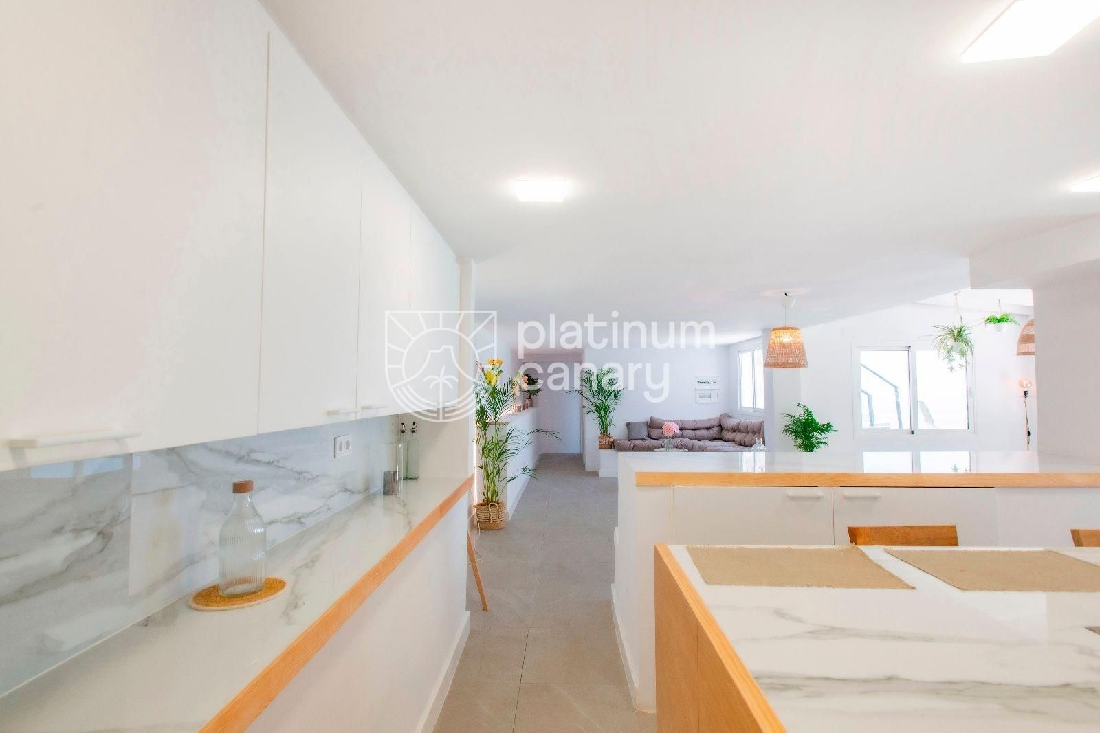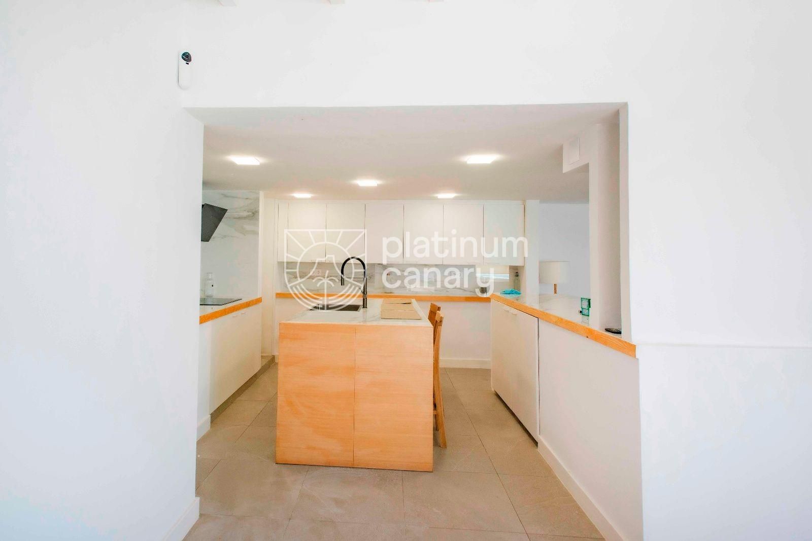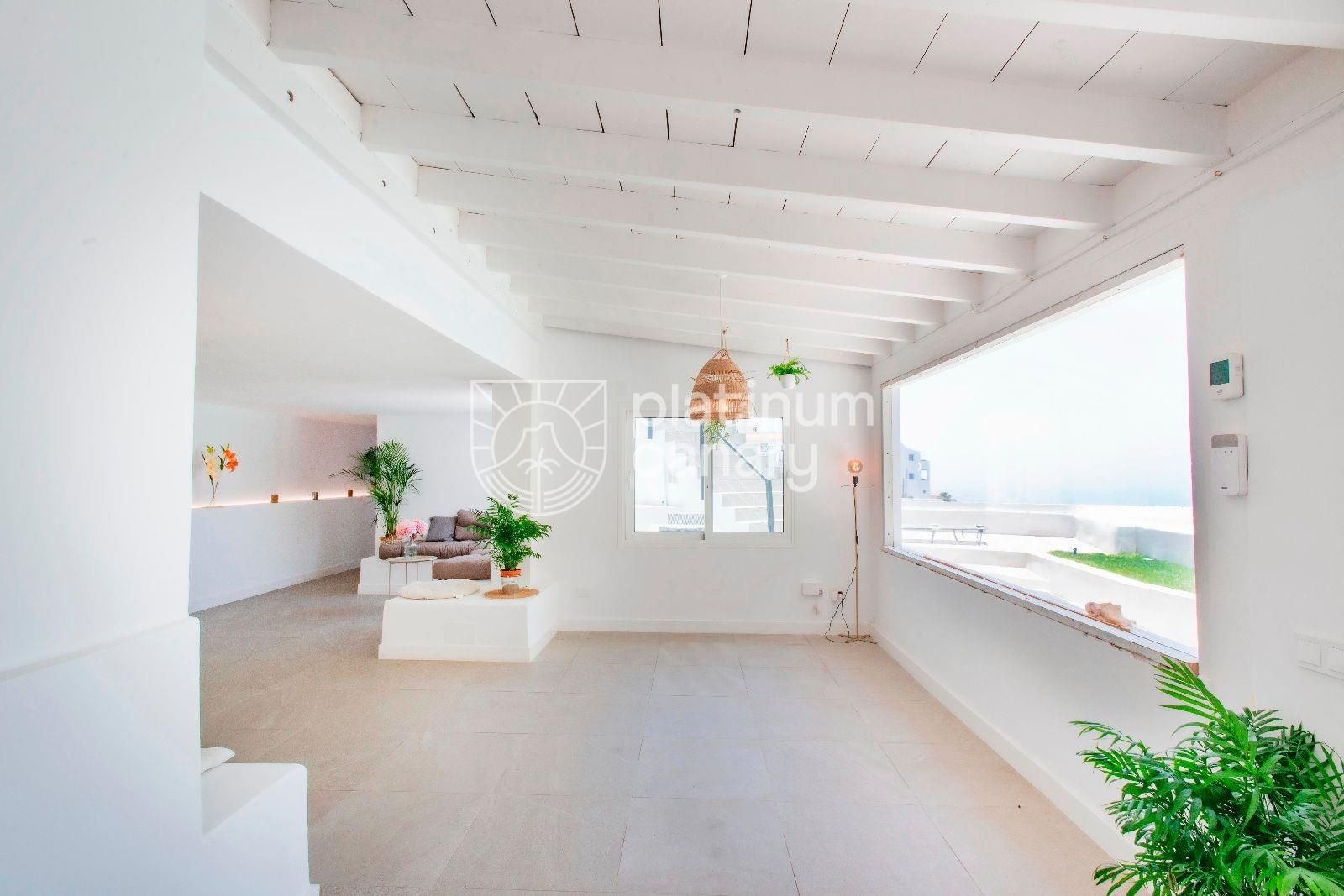 Renovado, Casa amplia y luminosa en edificio adosado. En una sola planta con cuatro dormitorios, todos en-suite. Dormitorio principal con vestidor y aseo independiente. Cocina abierta con isla y barra, luminoso salón comedor de dos ambientes y acceso directo al jardín con albercaDos dormitorios tienen acceso independiente al jardín. El jardín cuenta con césped, un árbol maduro con sombra, parterres, asientos en el interior Con una mesa grande y un bonito diseño. zona de natación. Vistas panorámicas al mar, privacidad y tranquilidad. Estacionamiento para 2 coches grandesAdecuado tanto para vivienda familiar/segunda residencia como para alquileres a corto plazo.