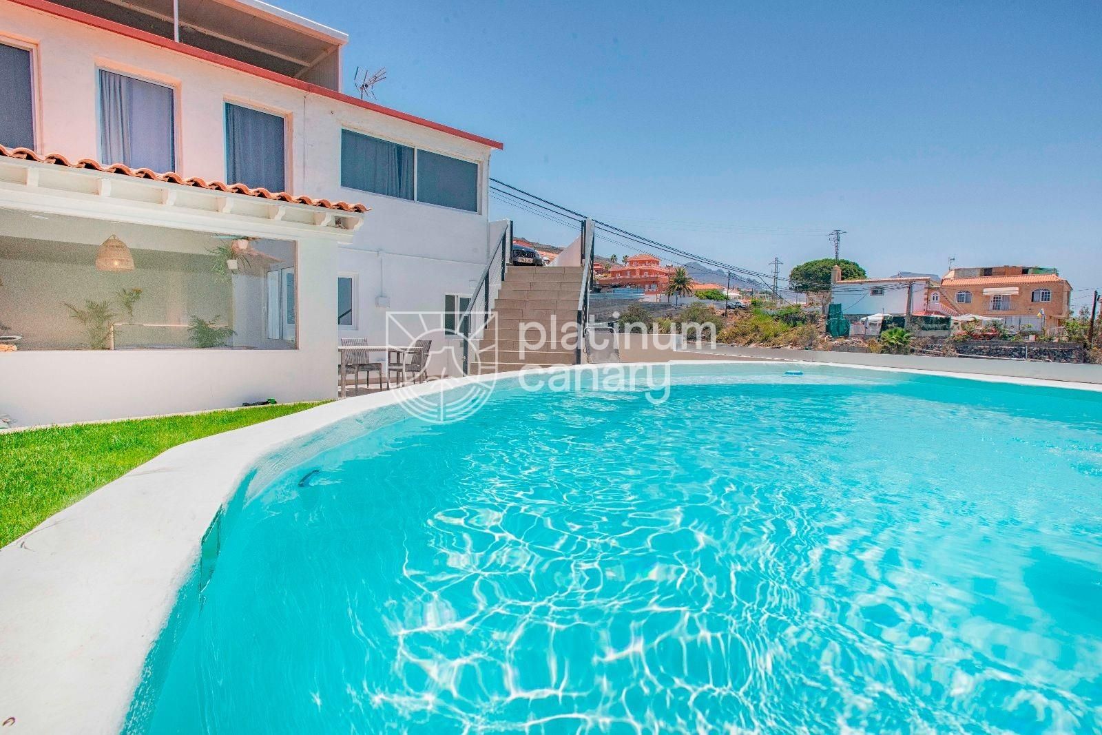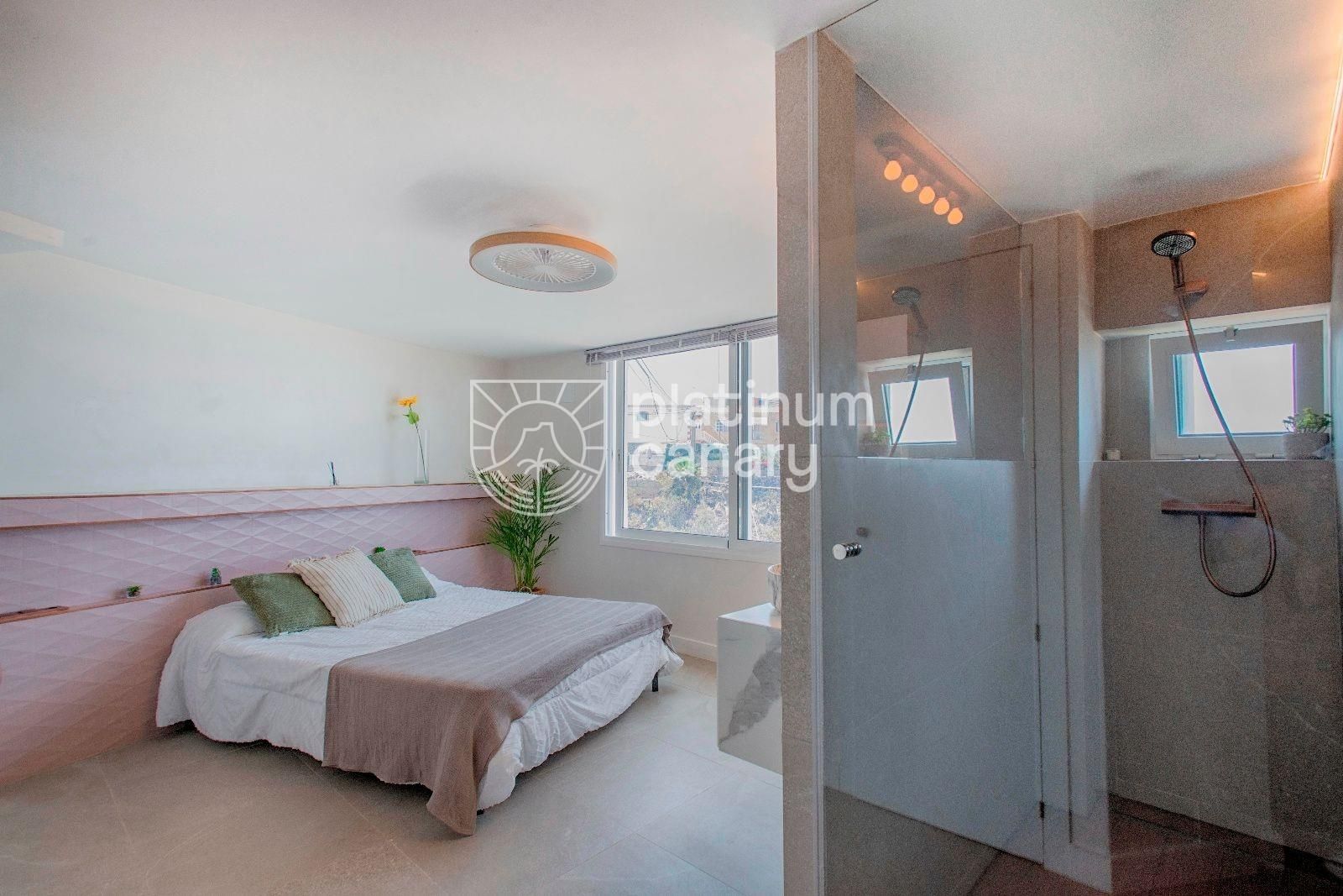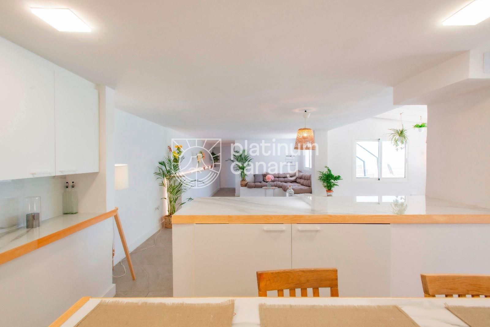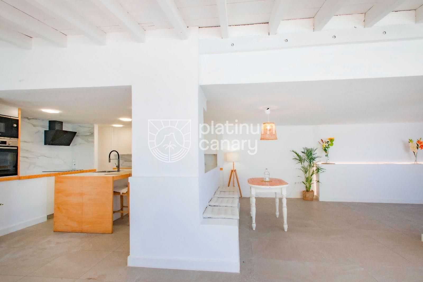 Renovado, Casa amplia y luminosa en edificio adosado. En una sola planta con cuatro dormitorios, todos en-suite. Dormitorio principal con vestidor y aseo independiente. Cocina abierta con isla y barra, luminoso salón comedor de dos ambientes y acceso directo al jardín con albercaDos dormitorios tienen acceso independiente al jardín. El jardín cuenta con césped, un árbol maduro con sombra, parterres, asientos en el interior Con una mesa grande y un bonito diseño. zona de natación. Vistas panorámicas al mar, privacidad y tranquilidad. Estacionamiento para 2 coches grandesAdecuado tanto para vivienda familiar/segunda residencia como para alquileres a corto plazo.