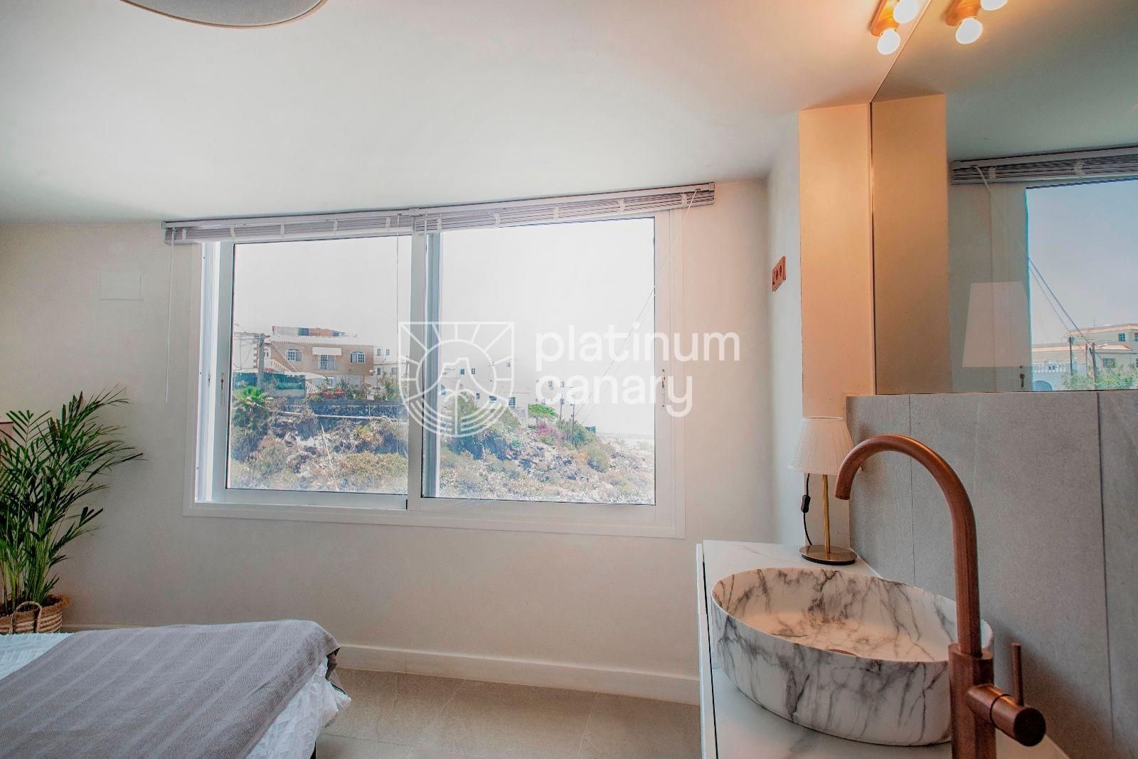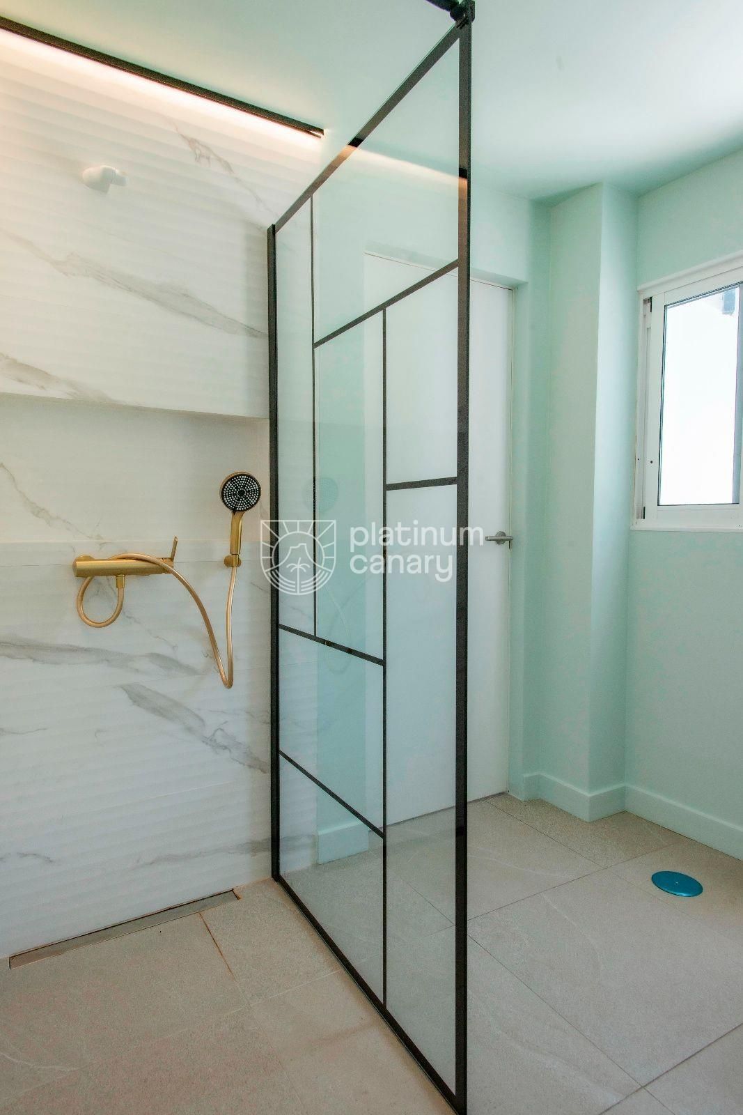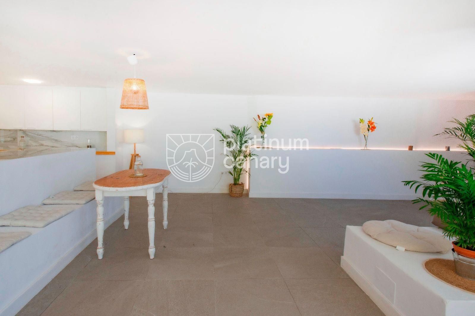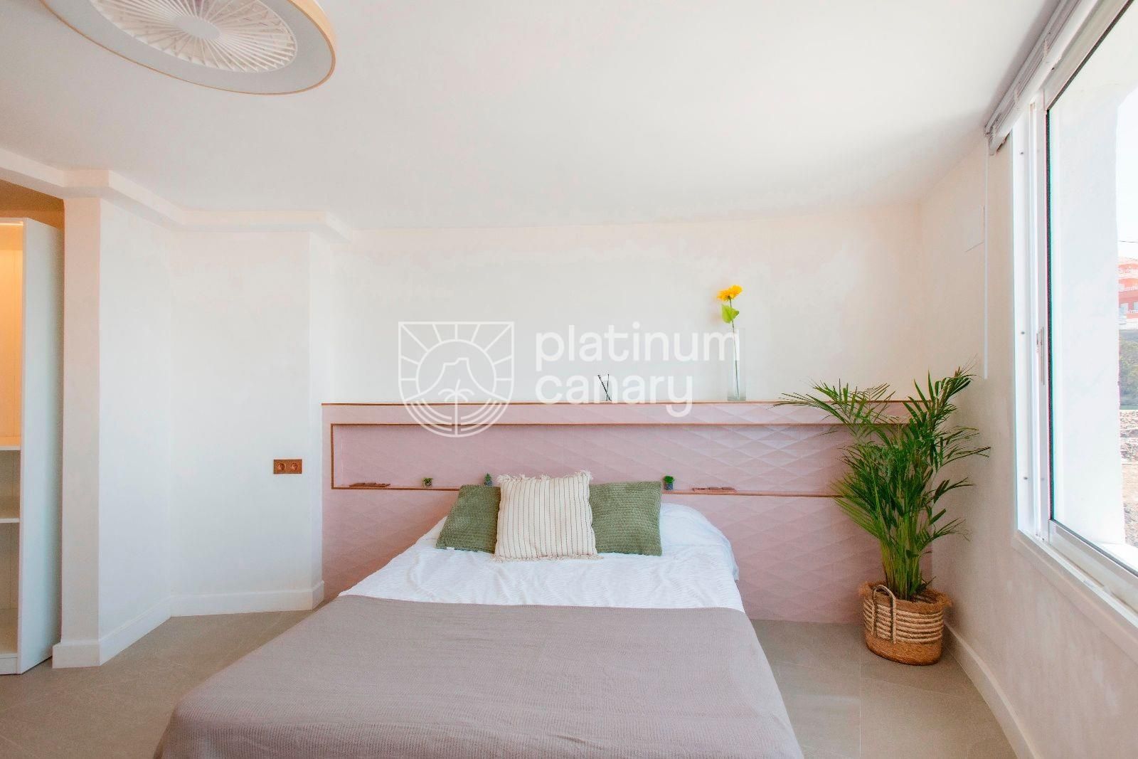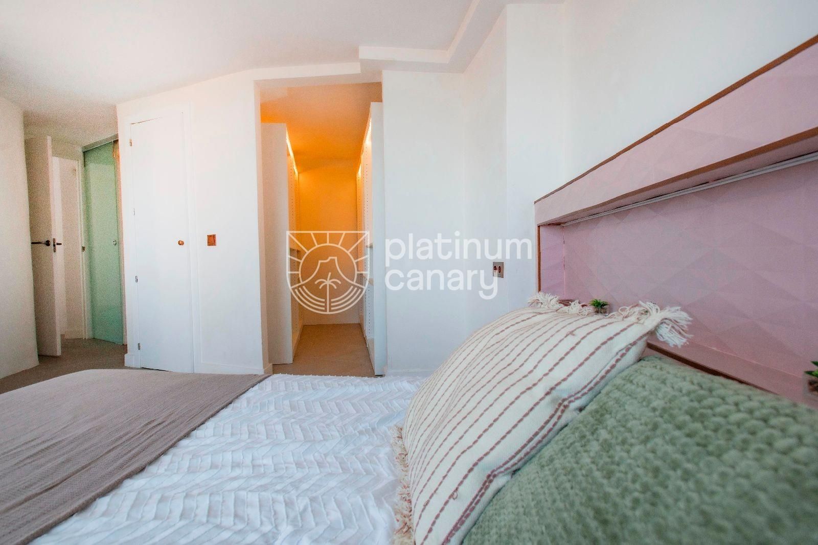 Renovado, Casa amplia y luminosa en edificio adosado. En una sola planta con cuatro dormitorios, todos en-suite. Dormitorio principal con vestidor y aseo independiente. Cocina abierta con isla y barra, luminoso salón comedor de dos ambientes y acceso directo al jardín con albercaDos dormitorios tienen acceso independiente al jardín. El jardín cuenta con césped, un árbol maduro con sombra, parterres, asientos en el interior Con una mesa grande y un bonito diseño. zona de natación. Vistas panorámicas al mar, privacidad y tranquilidad. Estacionamiento para 2 coches grandesAdecuado tanto para vivienda familiar/segunda residencia como para alquileres a corto plazo.