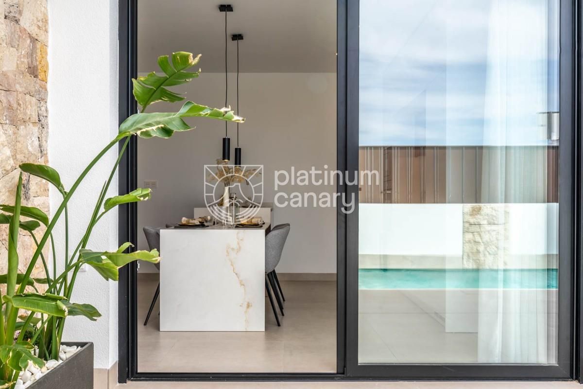 Jednopodlažní vily 3+kk s moderním „signature“ designem, většími pozemky a kamennými akcenty. Dispozice s vysokým stropem v kuchyni, venkovní soukromý bazén, velké střešní solárium, sklad/technická místnost, obíhající terasy a slunné zóny. Hlavní ložnice en-suite + rodinná koupelna, interiér/exteriér LED, vestavěné skříně se zásuvkami, předinstalovaná A/C. Oblíbená rezidenční část Roldánu, služby, parky, sportoviště, 2 golfová hřiště, cca 12 min na pláže Středozemního moře i Mar Menoru.