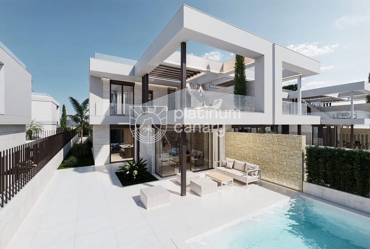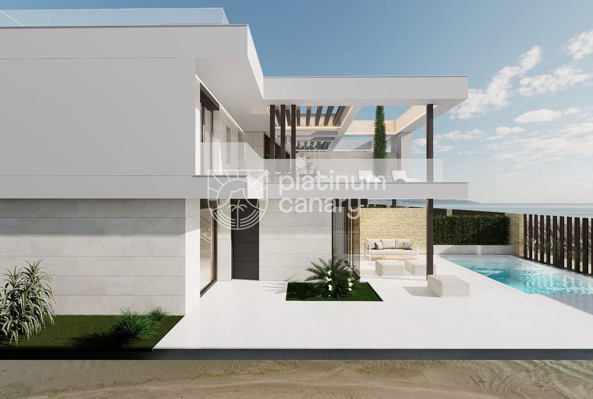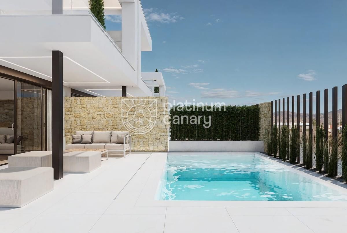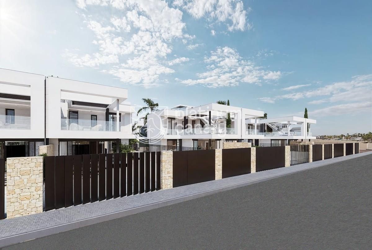 Moderno Villas junto al mar y golf (La Serena) v Los Alcázares - 3 dormitorios / 3 baños, dos plantas + solárium en la azoteaOpcional piscina privada, cocina de verano a jacuzzi. Estándar de calidad: puertas de entrada de seguridad, ventanas de aluminio con rotura de puente térmico, doble acristalamiento, persianas motorizadas en dormitorios, platos de ducha con acristalamiento, muebles de baño con espejos, preinstalación de A/C por conductos, paneles fotovoltaicosRiego automático de jardín. A poca distancia. playas (≈700 m), Golf La Serena y centros urbanos.