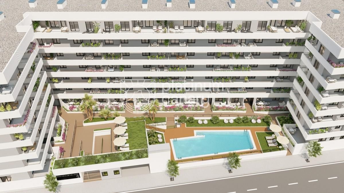 Proyecto 105 apartamentos (2-3 dormitorios) a sólo 300 m de la playaCada apartamento tiene gran terraza privada, todas las unidades pertenecen a garaje y bodegaÁreas comunes: gran piscina con terraza solárium a elegante salón social. Énfasis en materiales modernos, solución sostenible a confort térmico/acústico (cocina abierta, zonas bioclimáticas para una mayor eficiencia energética). Una combinación ideal. comodidad, naturaleza y estilo mediterráneo en Águilas.