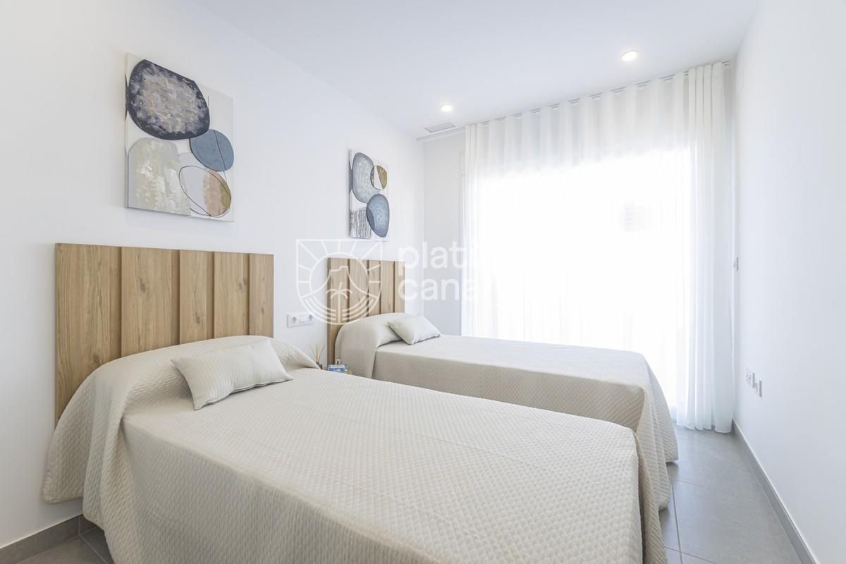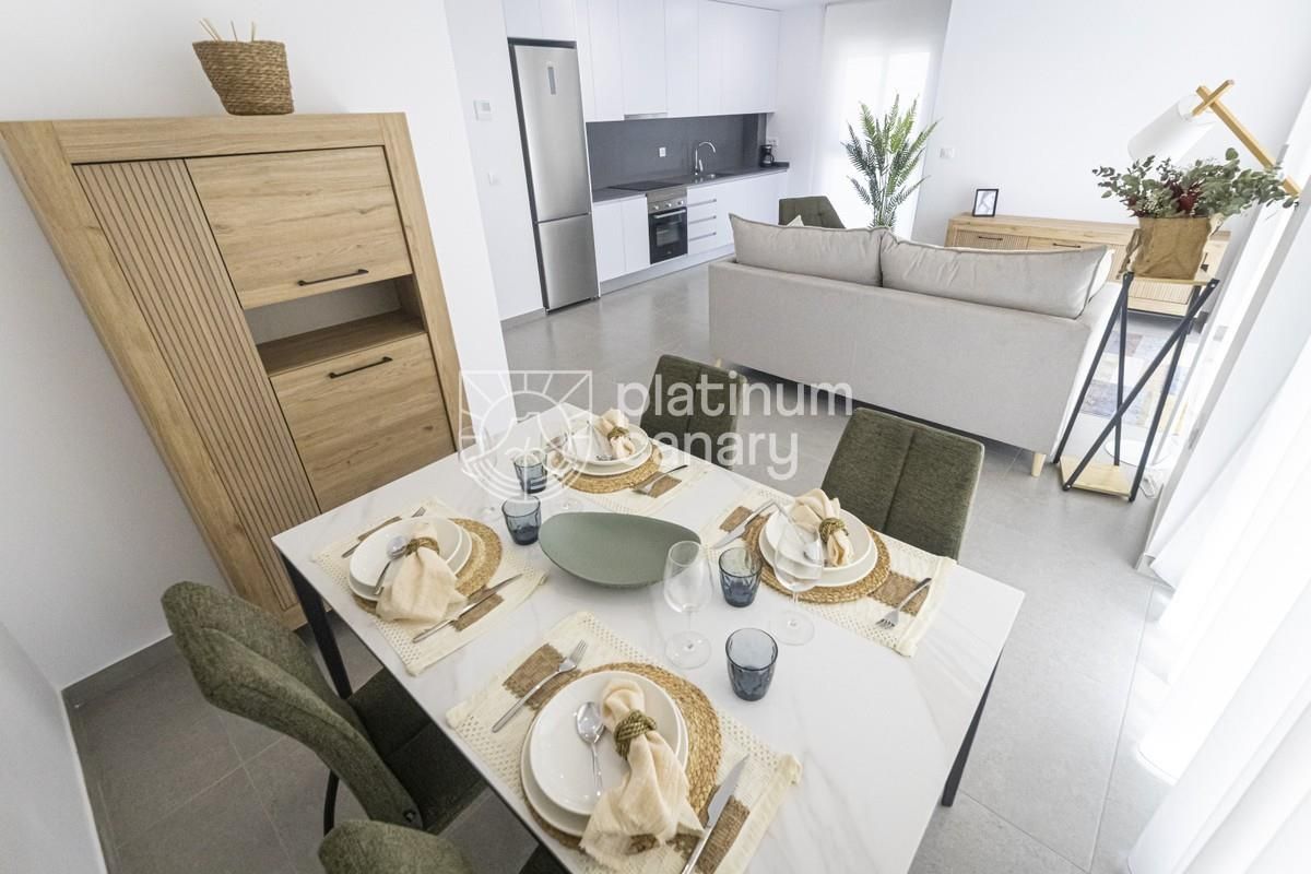 La Manga (Murcia) — přízemní byty 2–3+kk / 2 koupelny, navržené s důrazem na efektivní využití prostoru a prémiové materiály. Pěší dosah pláží (Mar Menor i Středomoří), služby a volnočasová zóna přístavu Tomás Maestre. Rezidence nabízí komunitní bazén + dětský, výtah, soukromé terasy a možnost garážového stání.